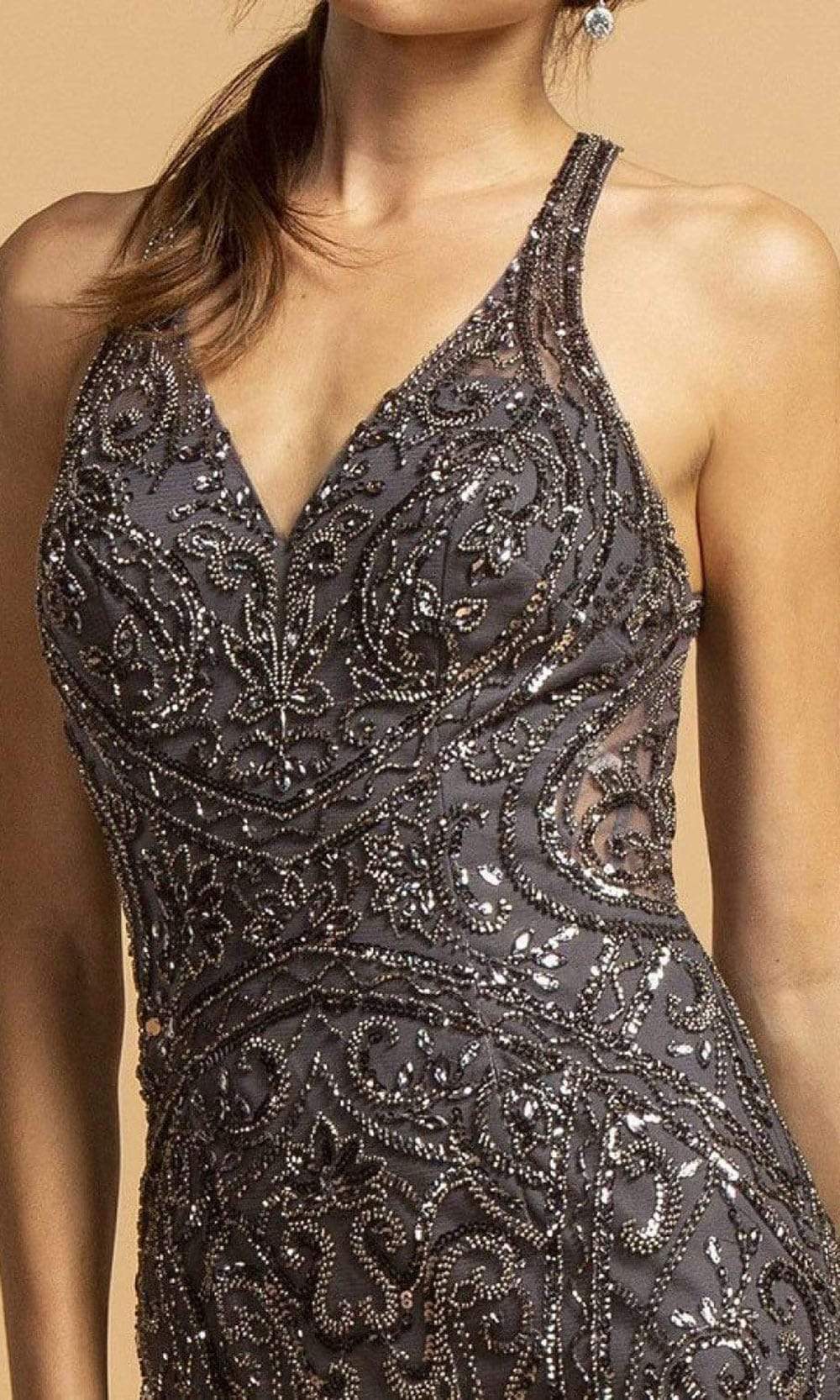 Get noticed in any crowd wearing this Aspeed Design S2130. This sexy short dress is embellished with beads allover and perfect for party nigh outs. It is styled with an open back and features V neckline on a flattering fitted bodice. Go girl and celebrate! Have fun in Aspeed Design !