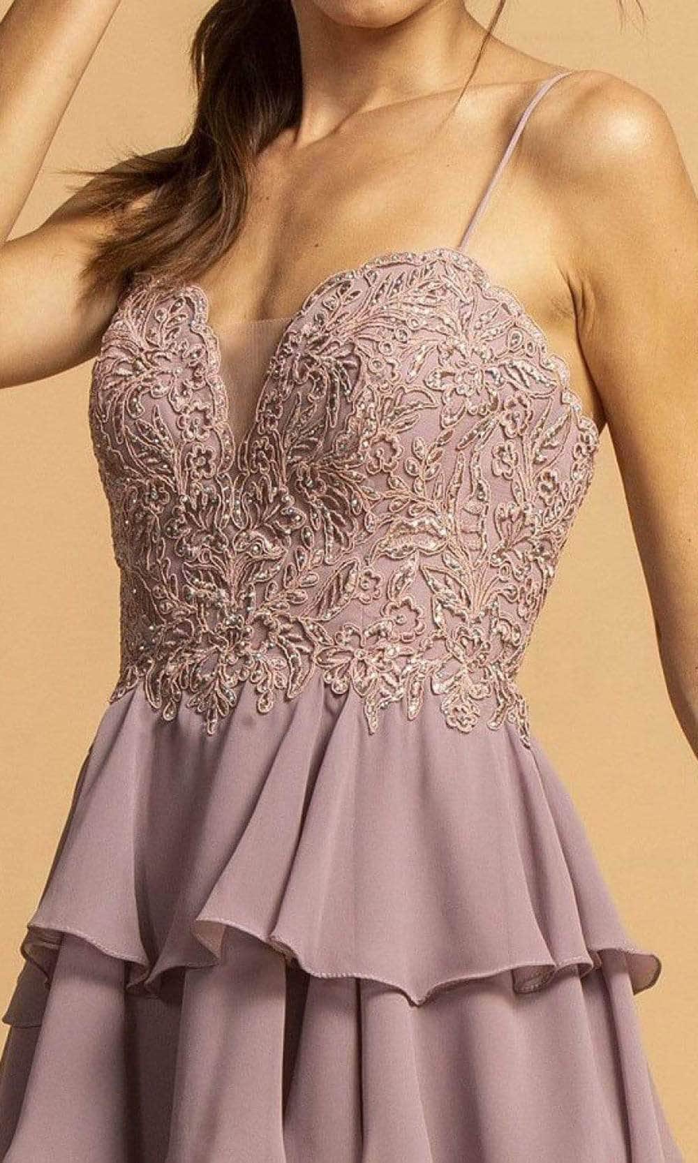 This enchanting creation by Aspeed Design S2131 is sure to make you the center of everyones attention. This short dress showcases a plunging sweetheart neckline supported by spaghetti straps in a sleeveless and embroidered bodice. Revealing an A-Line silhouette in a tiered skirt, this also displays a mid-open back with back zipper closure. Fall in love when you slip on this Aspeed Design S2131 dress. Models are wearing the Blush, Mauve, and Royal colors.