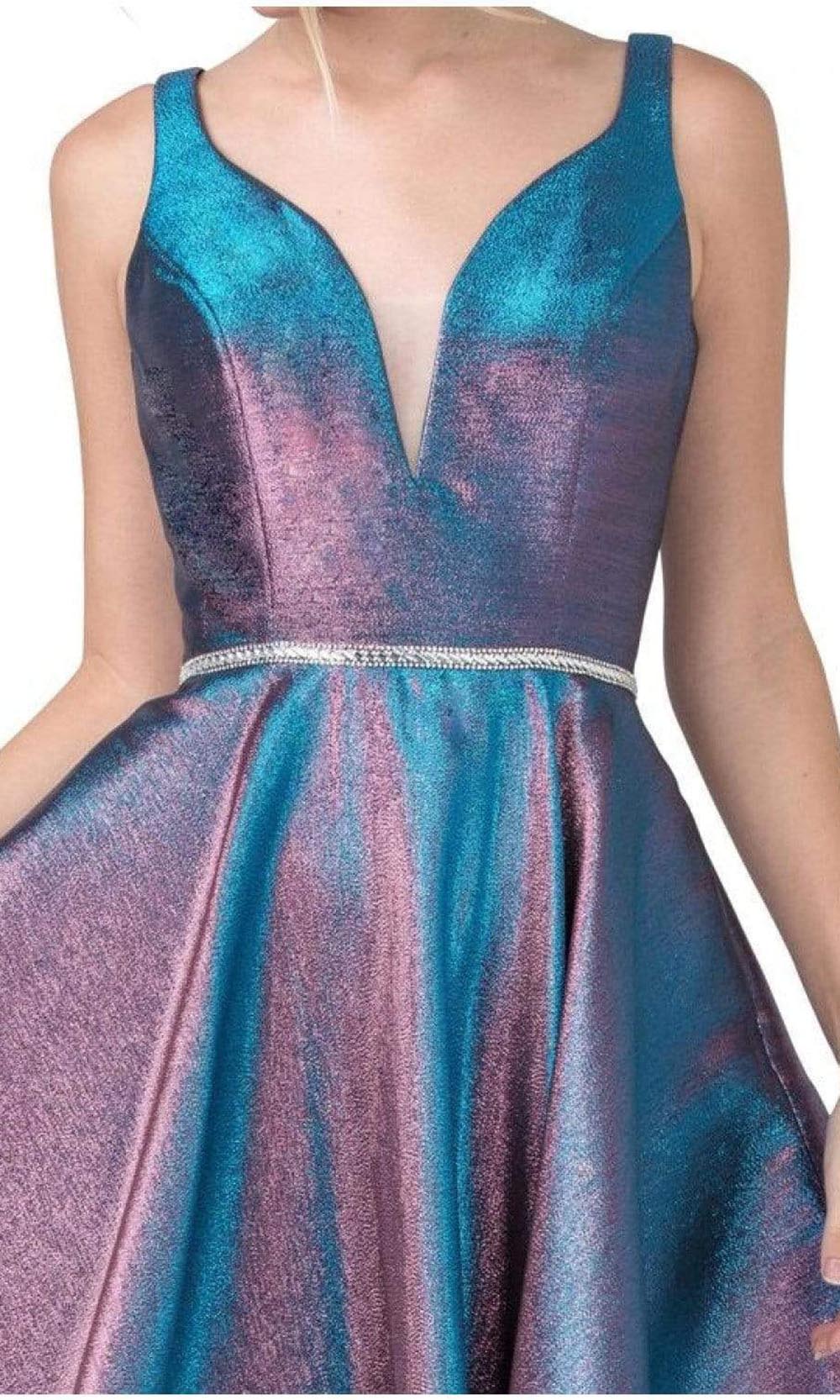 Go beyond expectations when flourishing an elegance in this Aspeed Design S2283 creation. Stunningly tailored glittering metallic silhouette, this dress reveals a contoured sweetheart neckline with a sheer inset. The back charms with a low v-style. Shimmering with beadwork along the waist, the skirt flares into a short hemline. Feel like a star in this enthralled Aspeed Design masterpiece. Models are wearing the Blue Purple, Blush and Light Aqua colors.