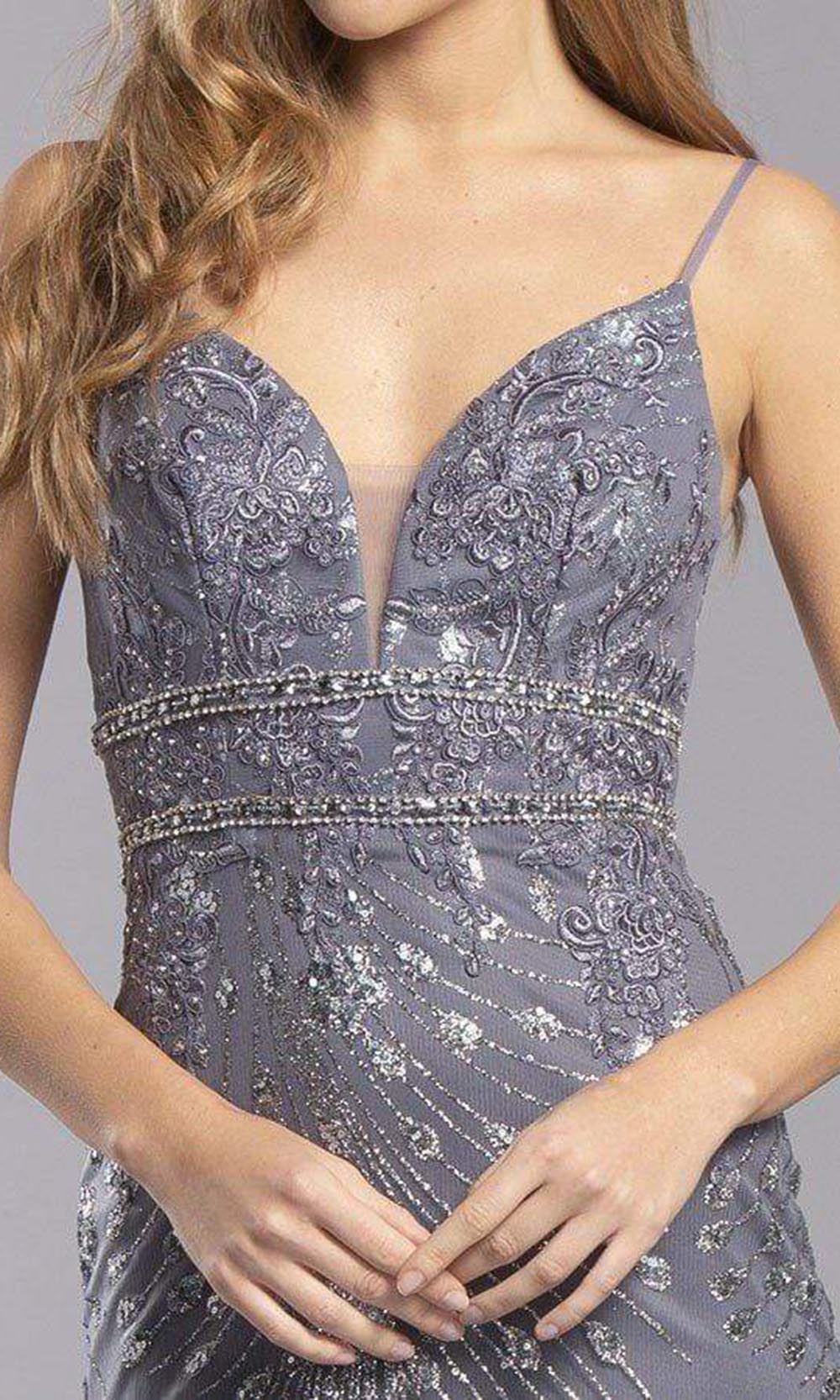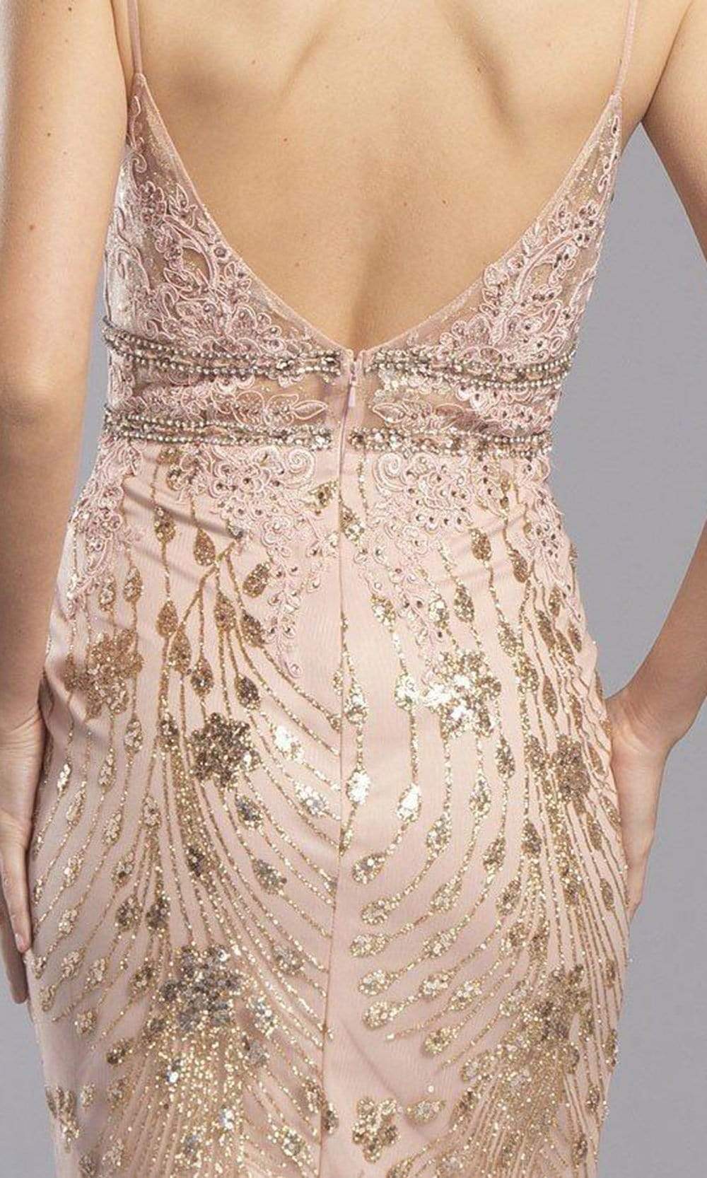 Look fabulous from all angles in this fantastic Aspeed Design S2319 creation. Styled with embroidery, and patterned embellishments, this dress reveals a plunging v-neck with spaghetti straps. The back has a v-style and layers of ornate thin strips wraps around the empire waist. The skirt skims into a sheath silhouette with a short hemline. Grant yourself the style that shines in this Aspeed Design masterpiece. Models are wearing the Charcoal and Rose Gold colors.