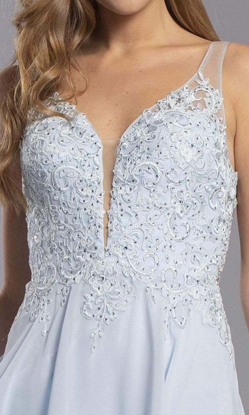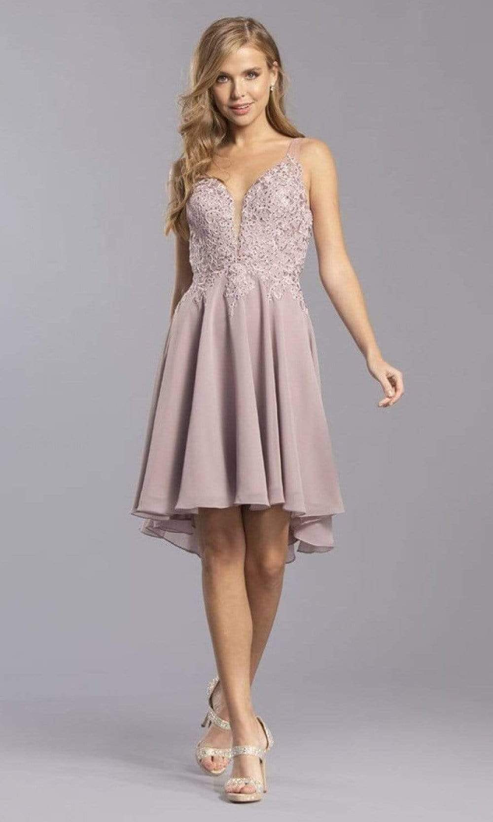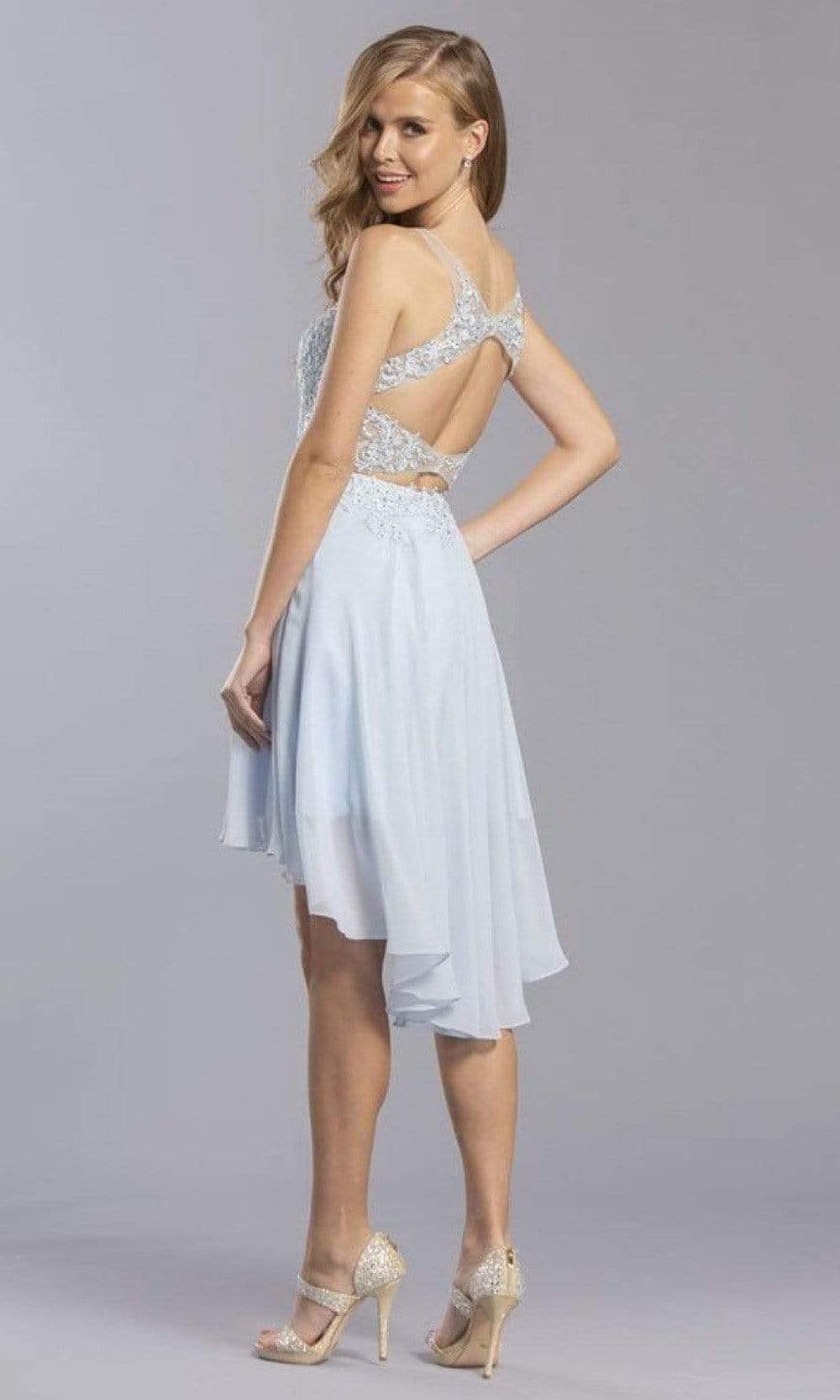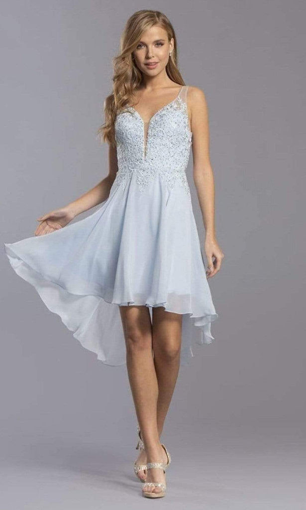Take their breath away with this stunning Aspeed Design S2336. This cocktail dress features a sleeveless and a plunging neckline with sheer panel. The top of the dress has a floral applique with beads. The skirt of this cocktail dress is in a high-low cut that makes it more attractive specially when dancing. The back has a keyhole back to show some skin for a daring look. Aspeed Design creation for a sensational effect that will wow the crowd as you glide past them and make a lasting impression in this.