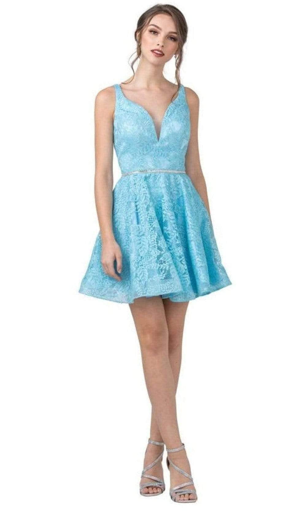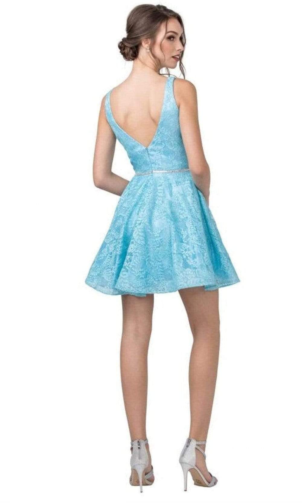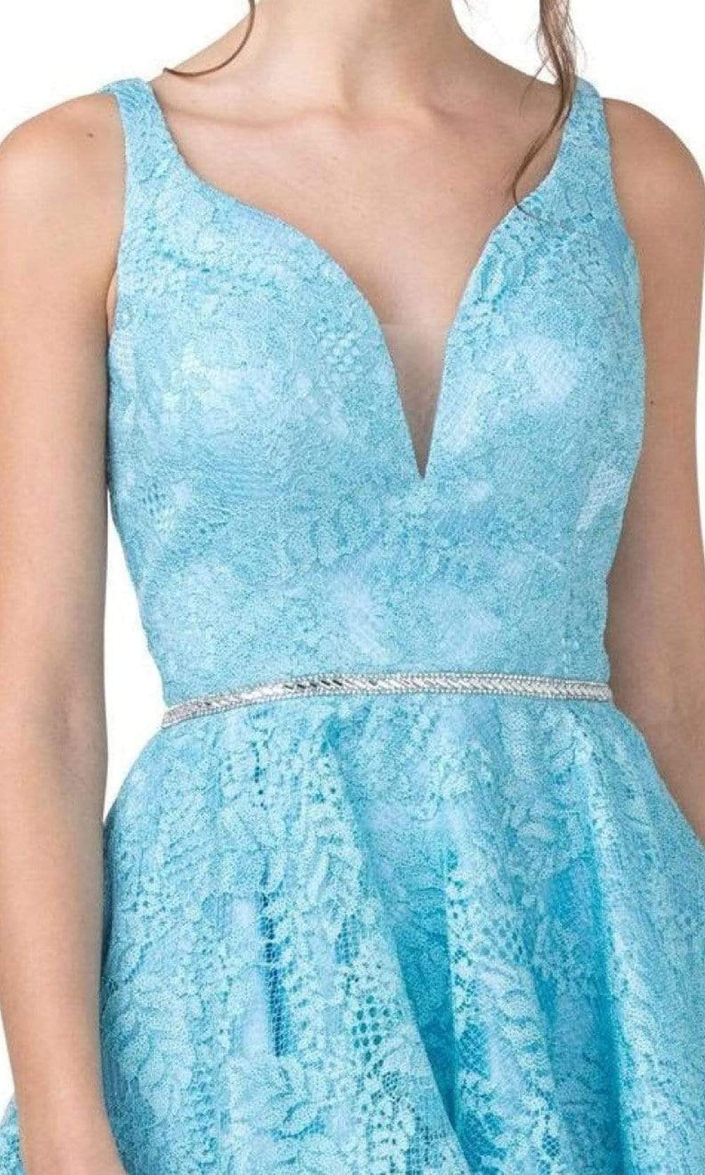 Get a timeless and trendy look in a new Aspeed Design S2362. This short dress parades a plunging neckline and a sleeveless. This dress is made with a lace fabric all throughout. It has a thin band with bead embellishment. It is an A-line silhouette cocktail dress has a low v-back and back zipper for closure. This stunning short dress of Aspeed Design brings together all the essentials for a great look at prom or party!