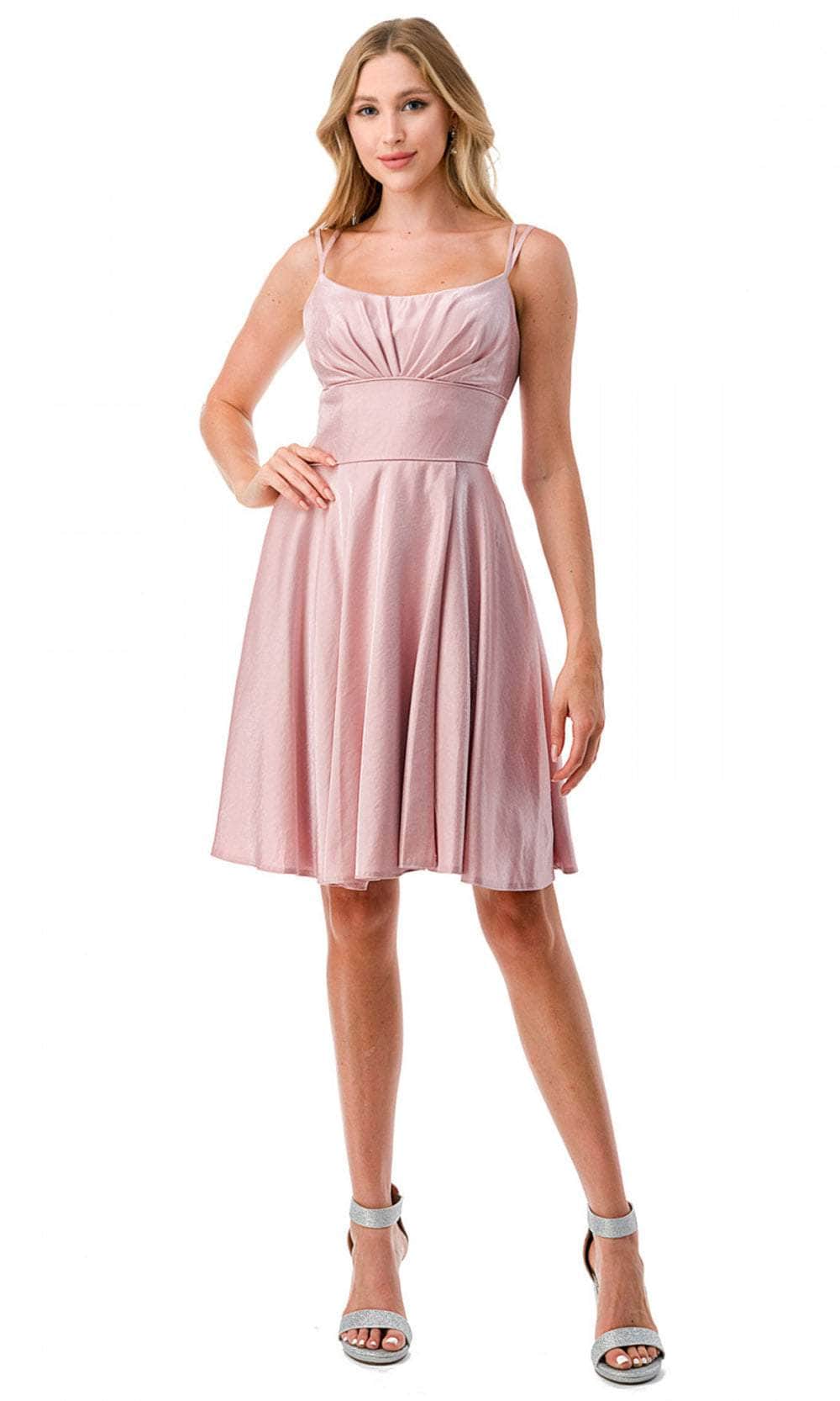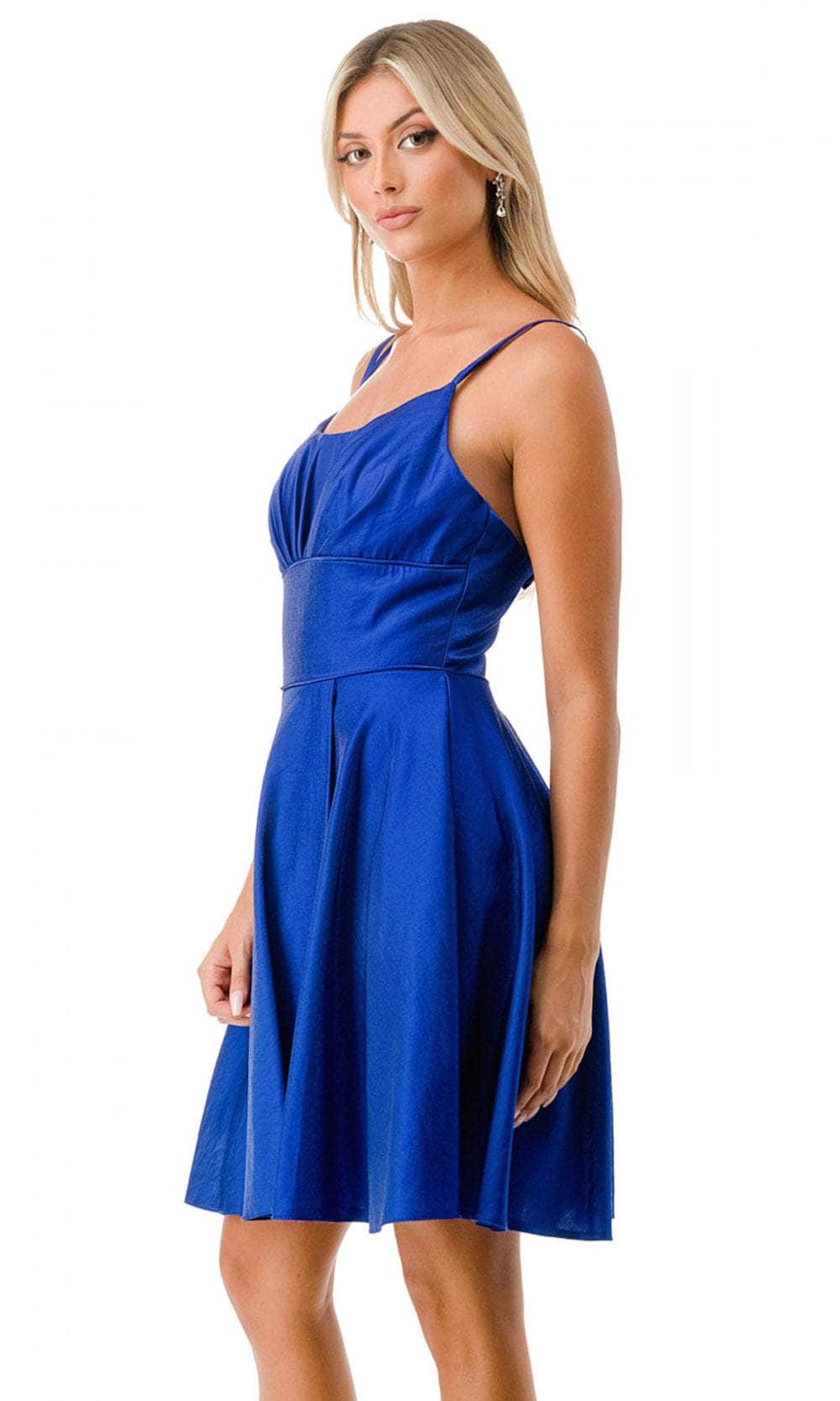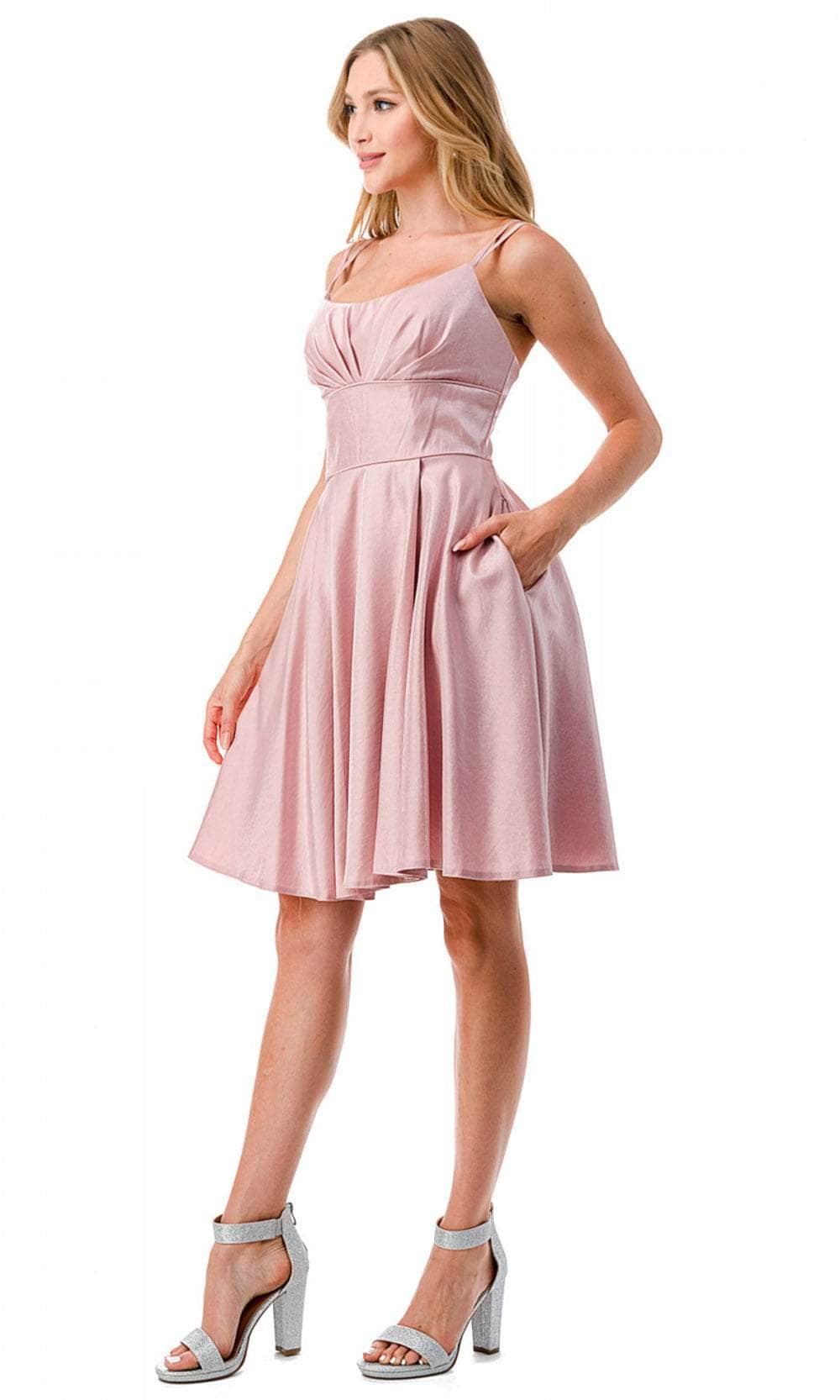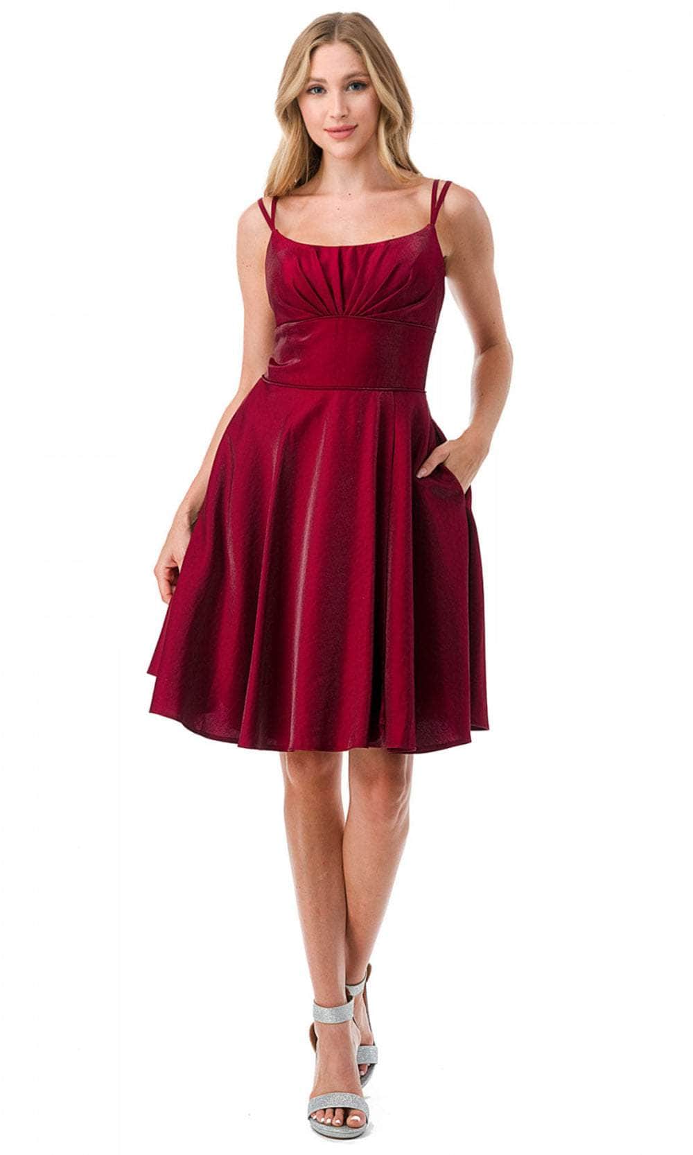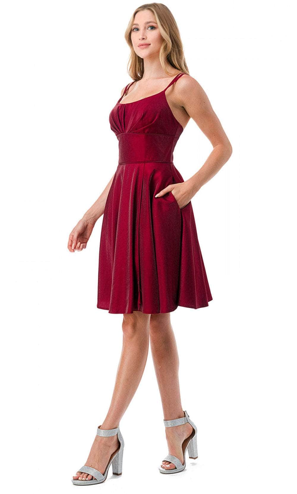 Exude a charm that is meant to mesmerize the elite crowd in this gorgeous Aspeed Design S2741M dress. This timeless style presents a sleeveless bodice topped by a ruched scoop neckline, wide waistband and dual spaghetti straps. The back is designed in a mid-open detail with a strappy style and a center zipper closure. An A-line skirt gracefully drops to the short hemline and completes the look with side pockets to keep your belongings. This Aspeed Design S2741M creation will absolutely make you feel special! Models are wearing the Burgundy, Emerald, Mauve, and Royal colors.