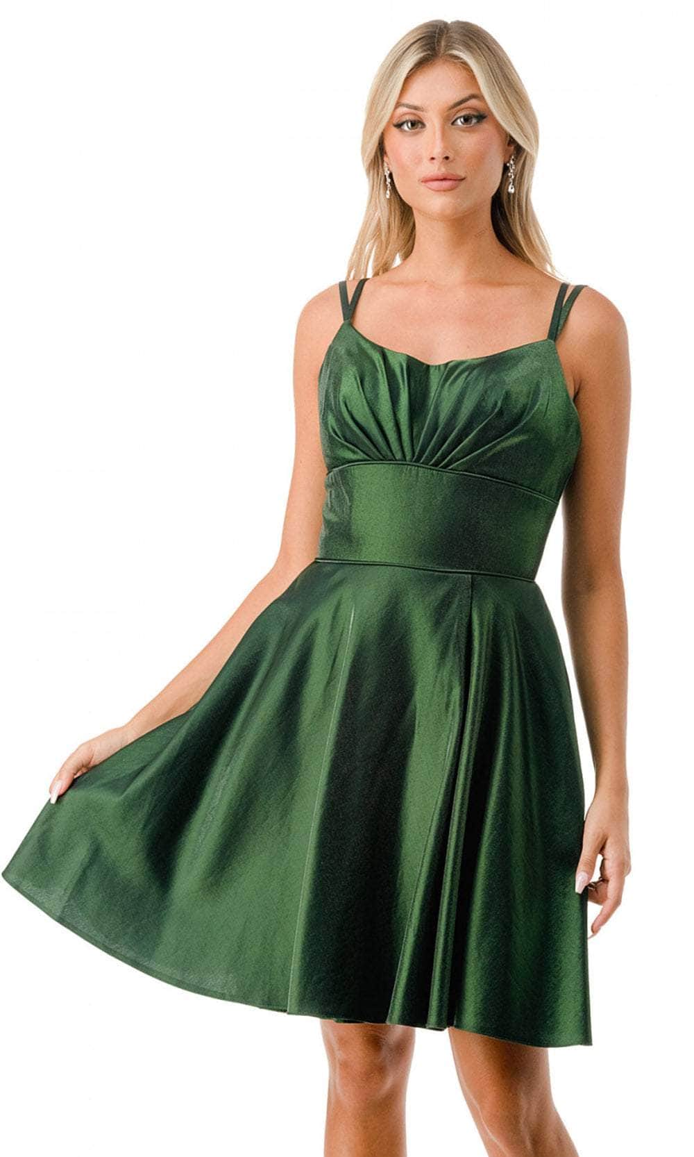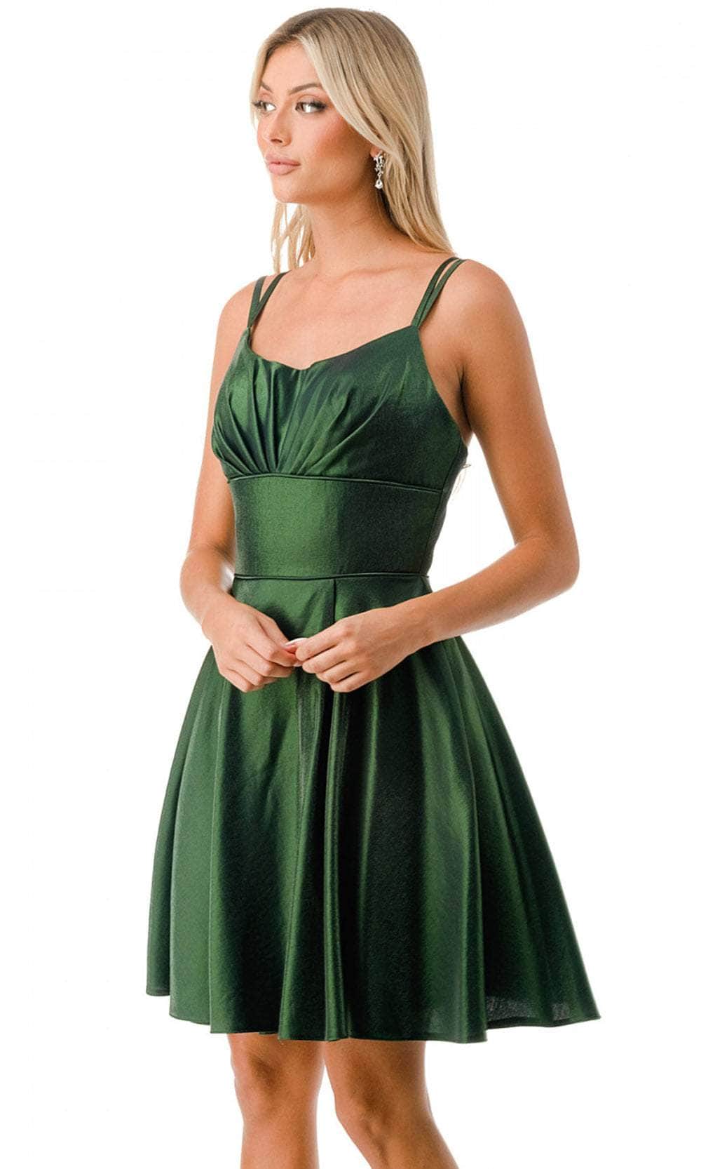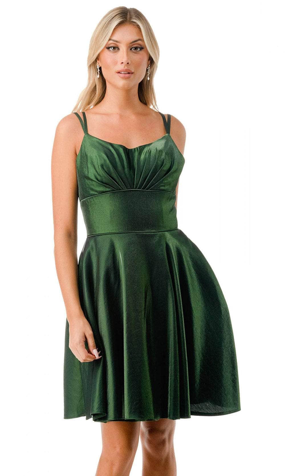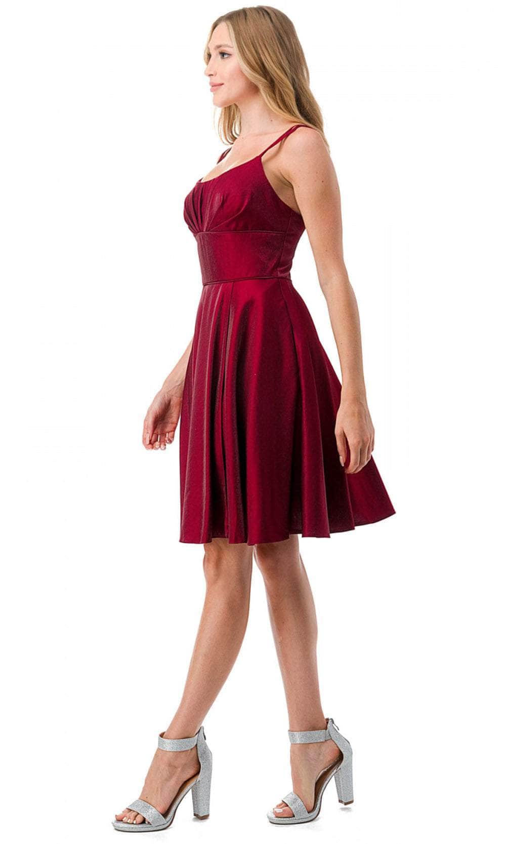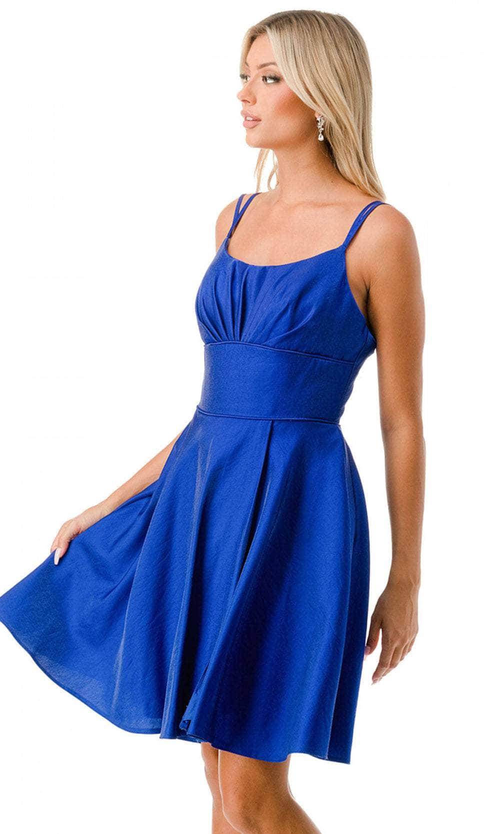 Exude a charm that is meant to mesmerize the elite crowd in this gorgeous Aspeed Design S2741M dress. This timeless style presents a sleeveless bodice topped by a ruched scoop neckline, wide waistband and dual spaghetti straps. The back is designed in a mid-open detail with a strappy style and a center zipper closure. An A-line skirt gracefully drops to the short hemline and completes the look with side pockets to keep your belongings. This Aspeed Design S2741M creation will absolutely make you feel special! Models are wearing the Burgundy, Emerald, Mauve, and Royal colors.