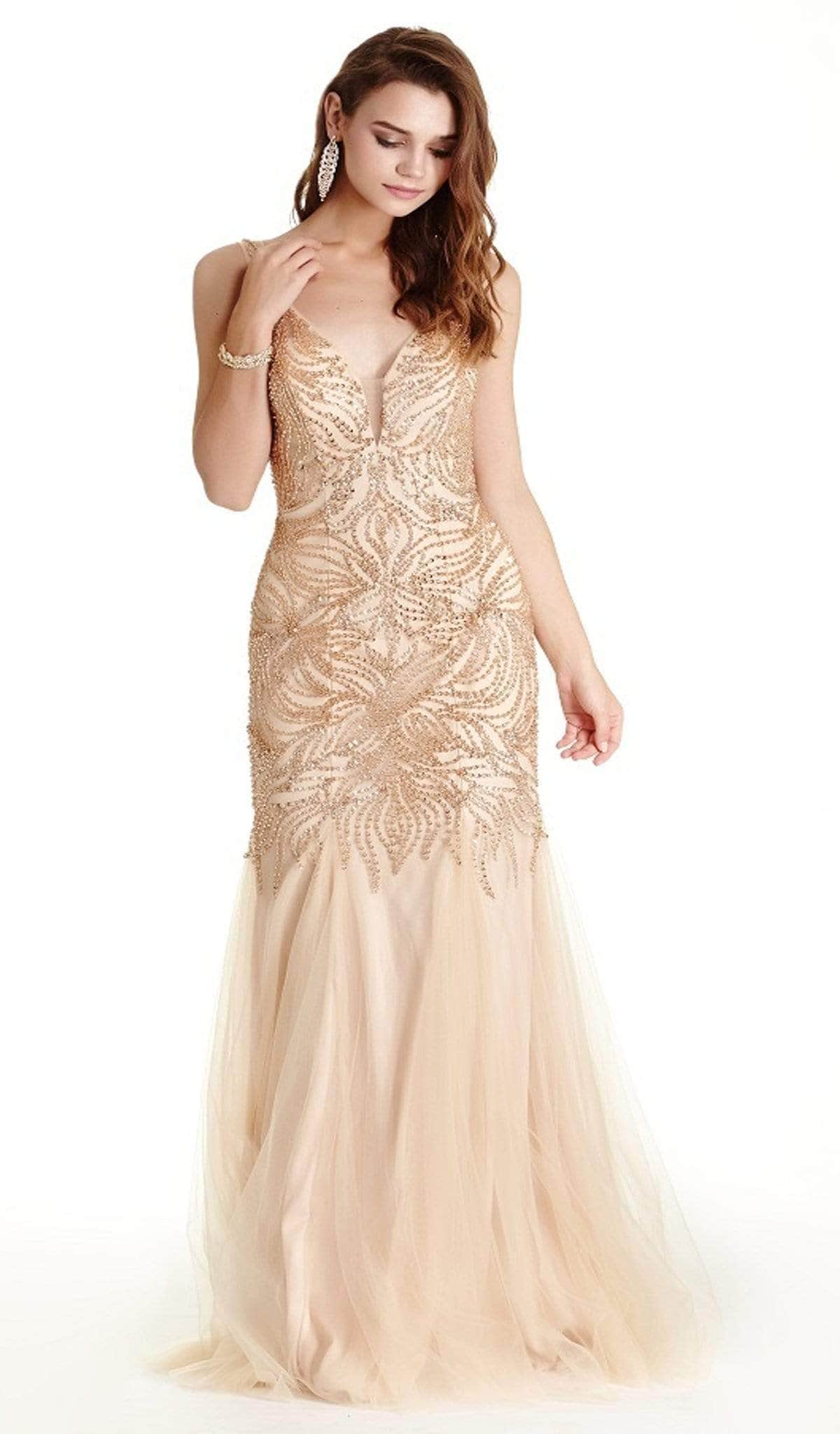 Glimmer with elegance in this stunning long dress from Aspeed L1763. Boasting a sleeveless design and a plunging V-neckline with a sheer panel, this dress exudes allure. The fitted bodice is lavishly adorned with sparkling embellishments, while the low V-back adds an extra touch of glamour. The skirt fits snugly at the thighs before flaring out into a graceful trumpet silhouette. Add a touch of heat to your special occasion with this sultry dress by Aspeed L1763 and spice up your date night with unforgettable style.