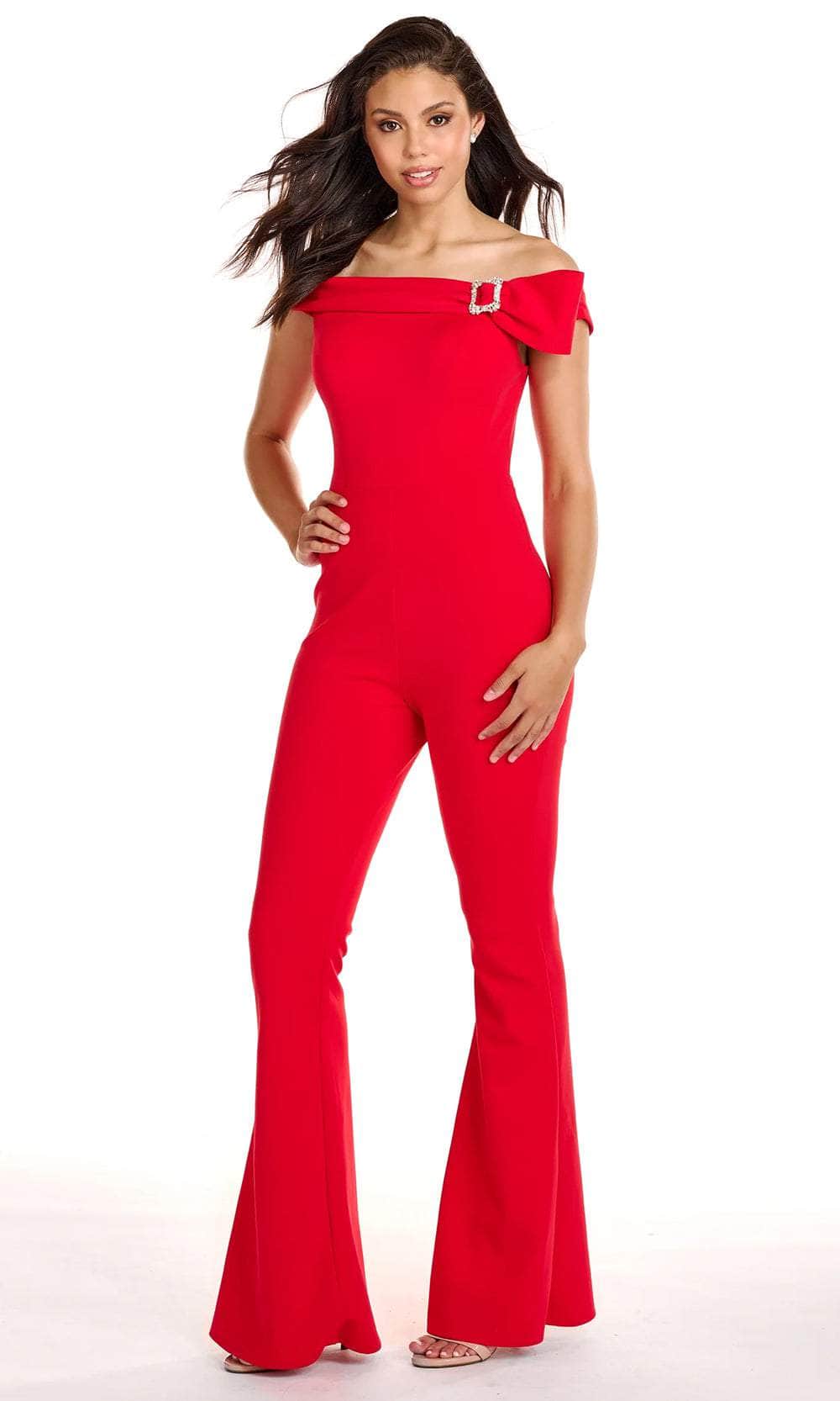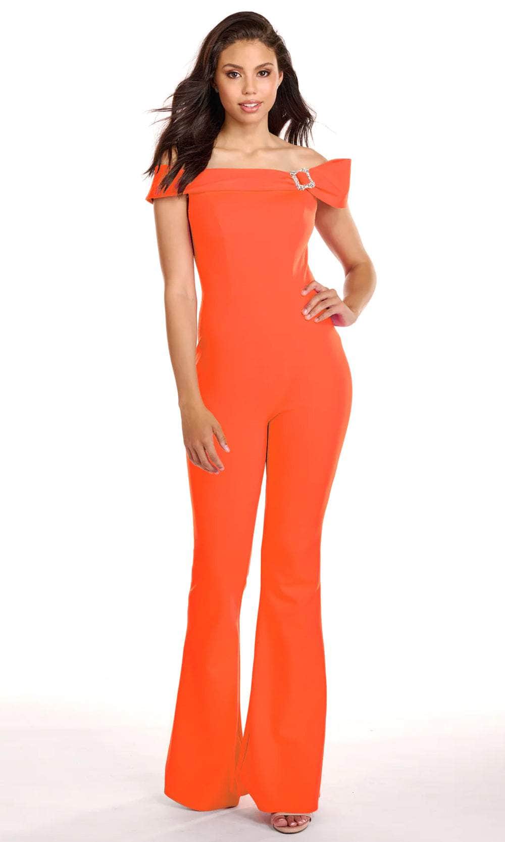 Stand out from the crowd with this Ava Presley 27702 creation. This timeless jumpsuit showcases a folded detail on the straight-across off shoulder neckline and cap sleeves. It comes with a buckled crystal brooch for added glamour and sparkle. The back has a mid-open cut that gives it an attractive design, and it is closed with a center zipper fastening. It’s completed by a pair of wide-leg pants that cascade to the floor-length hem. This design by Ava Presley 27702 is all set to make your evening extra special! Models are wearing the Neon Orange, and Red colors.