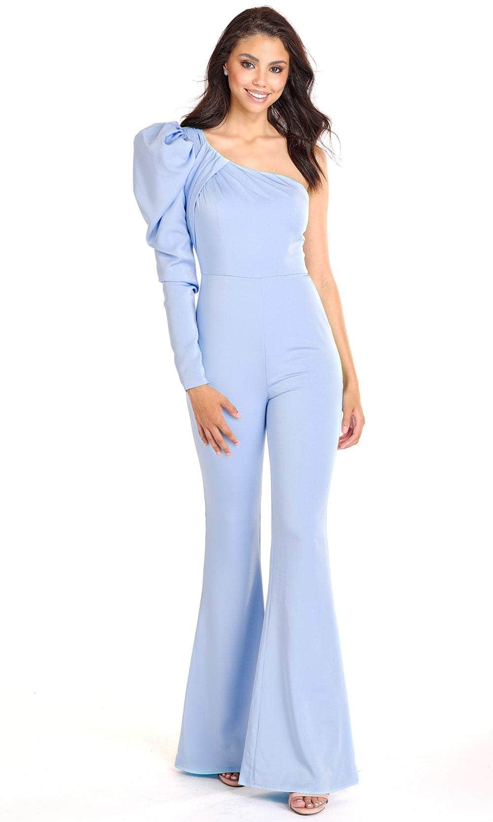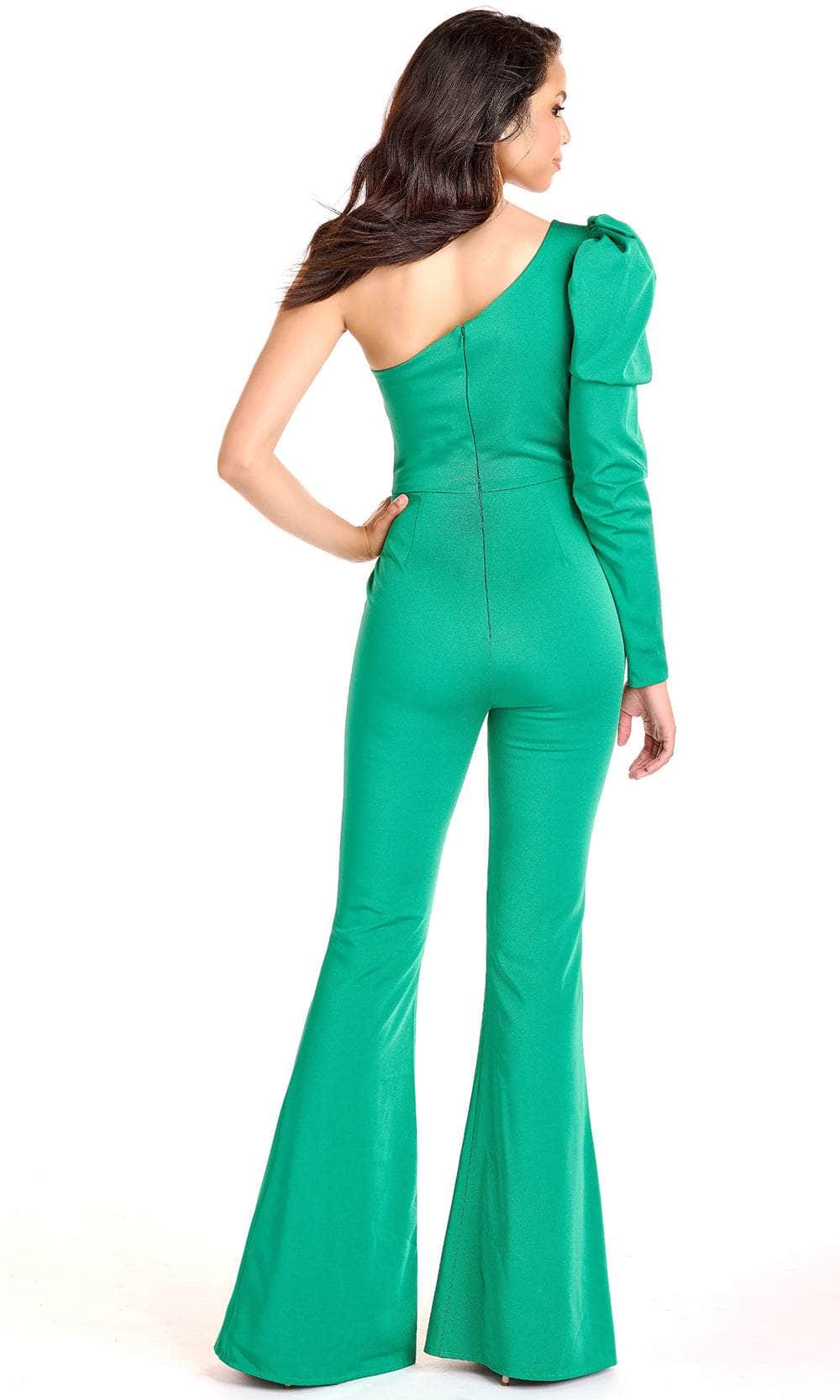 Seize the show in Ava Presley 27709, a chic jumpsuit designed to make a statement. The one-shoulder long sleeve adds a touch of asymmetrical flair, while carefully crafted seams ensure a flattering fit. The back zipper closure provides ease of wear, and the wide-leg pants exude modern sophistication. Whether it's a special event or a night out, this Ava Presley 27709 promises a contemporary and elegant look that effortlessly combines comfort and fashion. Models are wearing Emerald and Light Blue colors.