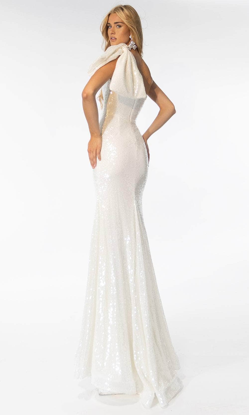 Embody Hollywood glitz and glamour in this Ava Presley 39286, a fully embellished sequin gown that captures attention effortlessly. The one-shoulder design with long sleeves and an asymmetrical neckline adds a contemporary flair. The back zipper closure ensures a seamless fit. The floor-length skirt, adorned with horsehair trim, gracefully concludes with a train, providing an elegant touch. Ava Presley 39286 promises a show-stopping look for any special occasion, seamlessly blending modern style with timeless sophistication. Models are wearing Neon Pink and Off White colors.
