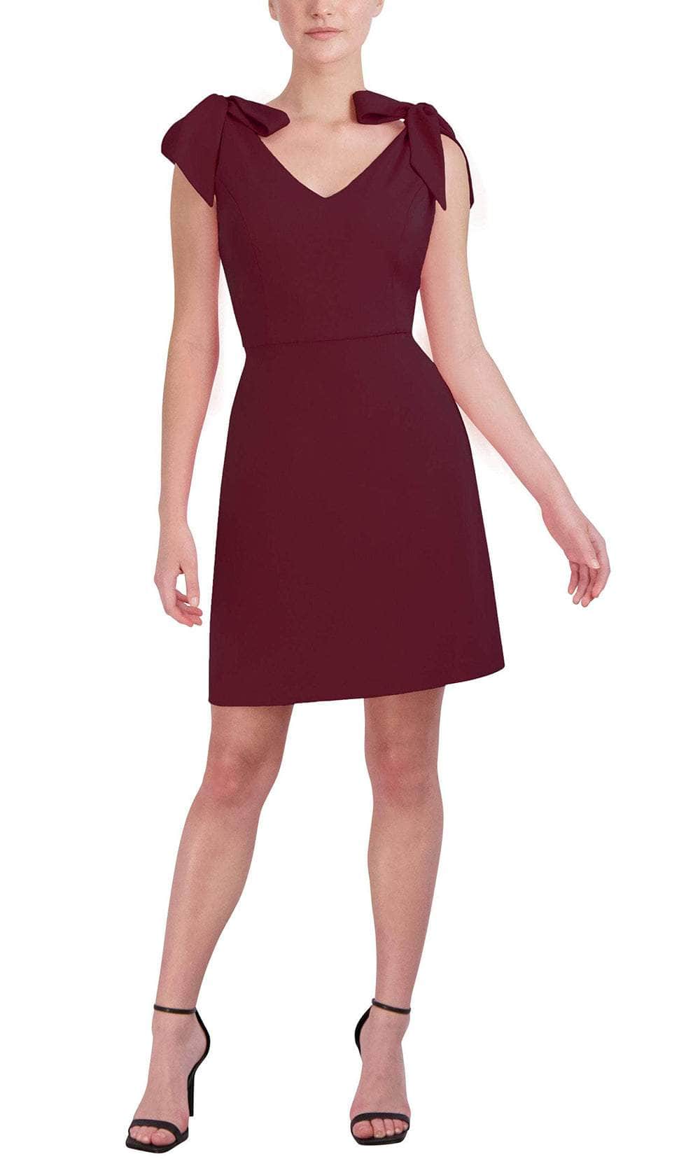 Marvel at the gorgeous appeal of this BCBG Generation GT02D11 creation. Sculpted with tailoring lines on a vibrant scuba crepe silhouette, this sleeveless piece reveals a deep v-neckline and accented with bows on the shoulders. Styled with a v-open back and a concealed zipper closure, the sheath skirt skims into a mini hemline. Orchestrate a moment for you to shine in this exquisite BCBG Generation masterpiece. Models are wearing the Aqua Sky, Violet, Red, and Hot Pink colors.