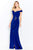 | Details: | Off shoulder sleeves, Jeweled, Fitted bodice, Long column dress, Thigh high slit, Back zipper, Sweep train |