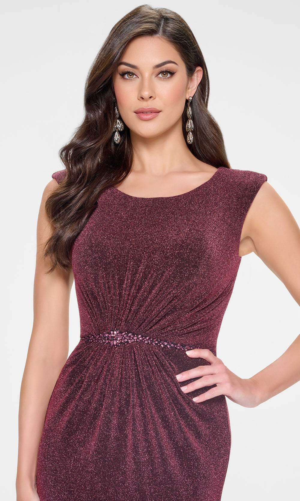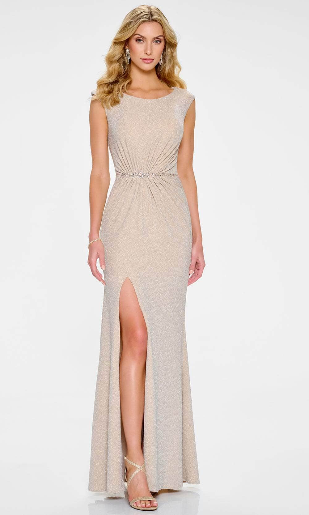 The Cameron Blake CB201 gown embodies the epitome of elegance and contemporary flair. Made from luxurious stretch knit fabric, it provides a sleek and structured fit that enhances your natural shape. Featuring a scoop neckline, the gown’s shimmering stone embellishments and gathered waist details create an effortlessly chic and defined silhouette. The thigh-high slit introduces a bold, modern edge to this classic design. Paired with the included matching shawl, the CB201 gown ensures you'll turn heads at any refined event. Available in Blush, Champagne, Mulberry, and Peacock.table class="table">