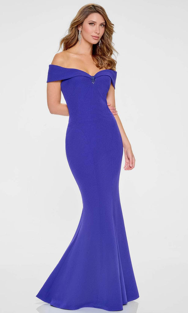 Timeless elegance meets modern refinement in the Cameron Blake CB212, a breathtaking mermaid gown crafted to flatter every curve. Designed with a soft stretch crepe fabric that hugs the body beautifully, this gown features a classic off-shoulder sleeves and sweetheart neckline that enhances the decolletage with a touch of charm. The beaded brooch in the bust adds an element of sophistication. Choose this exquisite Cameron Blake CB212 design to make a lasting statement at any special occasion. Models are wearing Mink, Iris, and Aubergine colors.