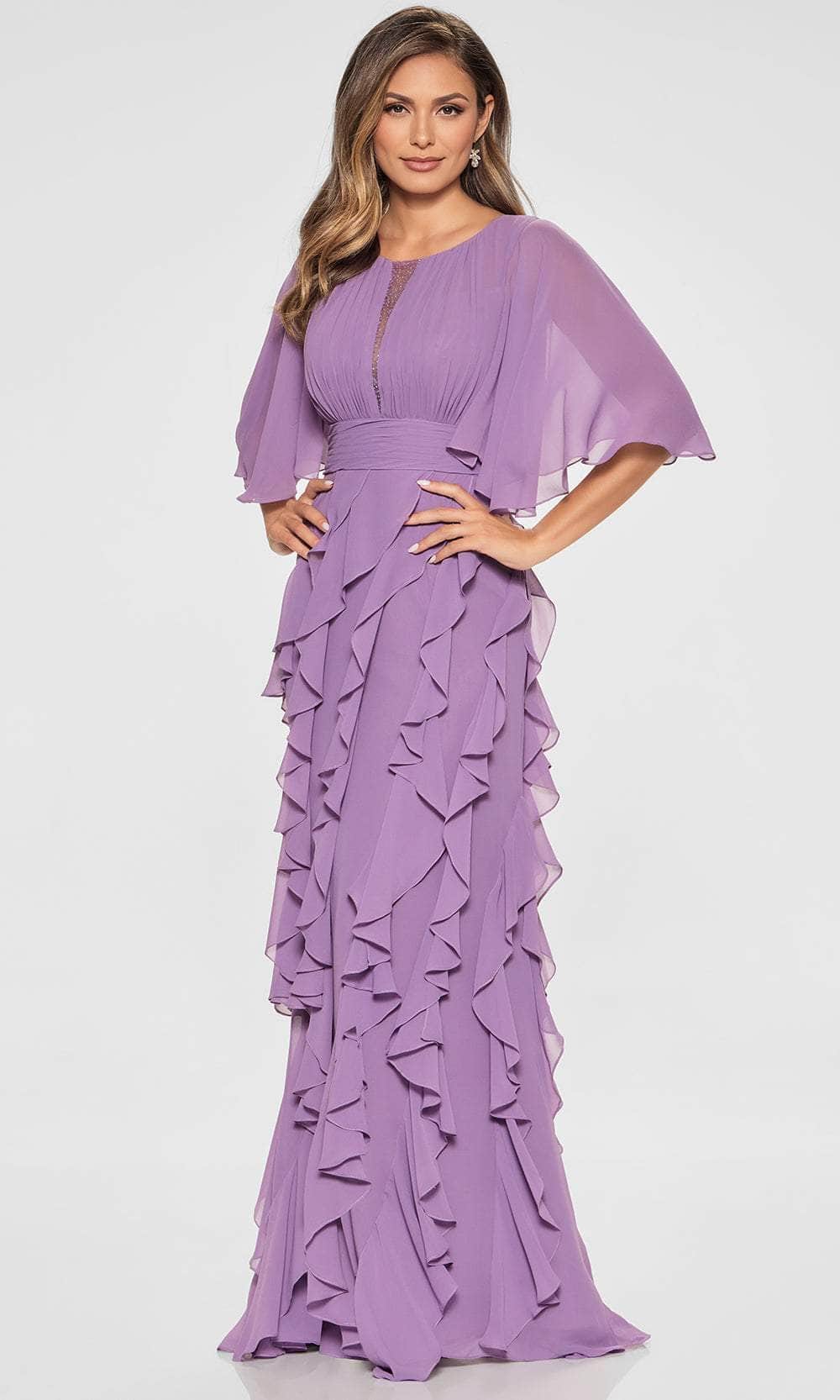 The Cameron Blake CB213 dress is the embodiment of grace with its flowing layered ruffle design. Featuring a jewel neckline and sleeveless cut, this gown exudes modern sophistication while maintaining a timeless aesthetic. The ruched bodice and wide waistband cinches the waist, complementing the multi-tiered skirt that cascades to the floor in effortless elegance. Crafted from luxurious chiffon and tulle, it provides a regal yet airy feel. The included removable flutter sleeves allow for effortless styling adaptability. Wear the Cameron Blake CB213 to any upscale event and leave an unforgettable impression. Models are wearing Aubergine, Charcoal, and Heather colors.
