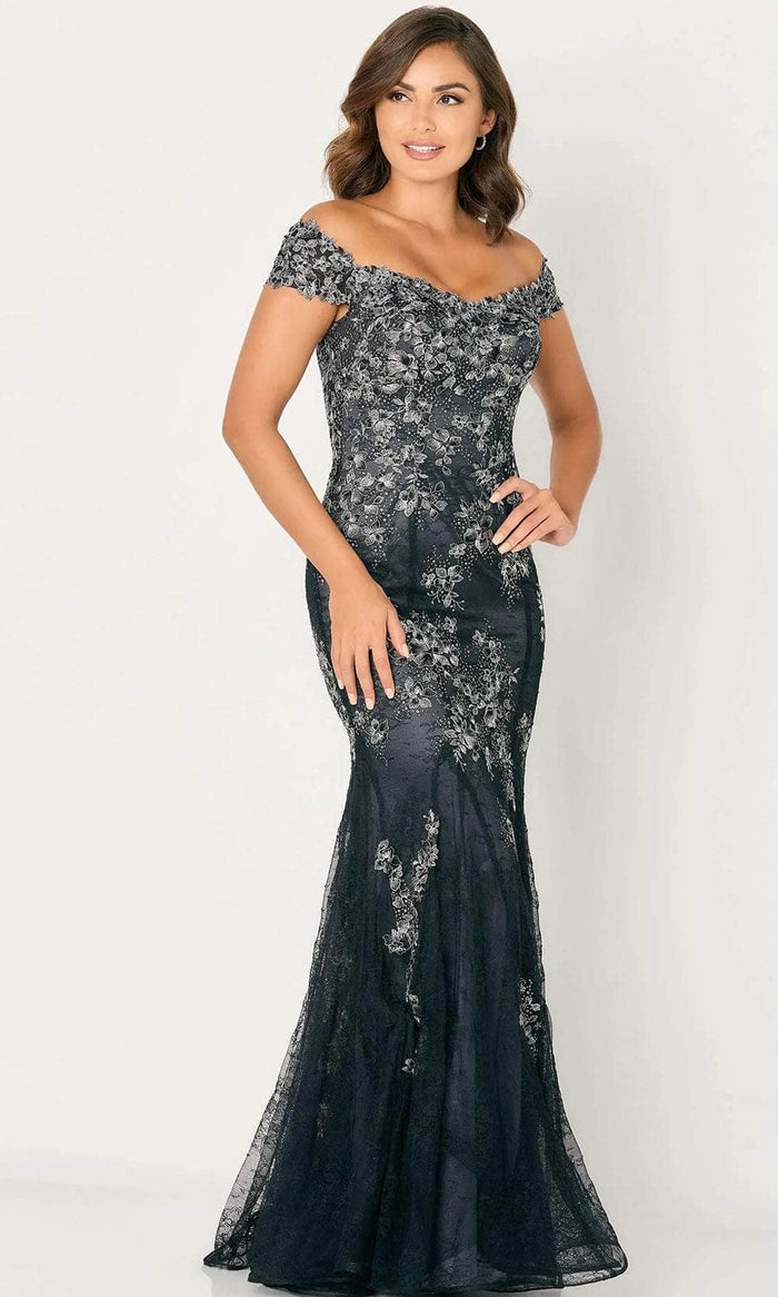 Tantalize everyone and leave an impression as you grace the scene in this remarkable Cameron Blake CB792 creation. Drawing inspiration from lush florals and the tantalizing feminine form, this refined gown is embellished with intricate floral lace applique atop an off shoulder bodice. Gracefully accentuates the feminine form a spectacle of shimmering metallic thread weaves with delicate lace introduces a unique and captivating dimension to this unparalleled gown. The skirt flaunts the figure beautifully by showcasing a mermaid silhouette with a sweeping design. Step into the spotlight with grace and elegance in this exquisite Cameron Blake CB792 masterpiece. Model is wearing the Black color.