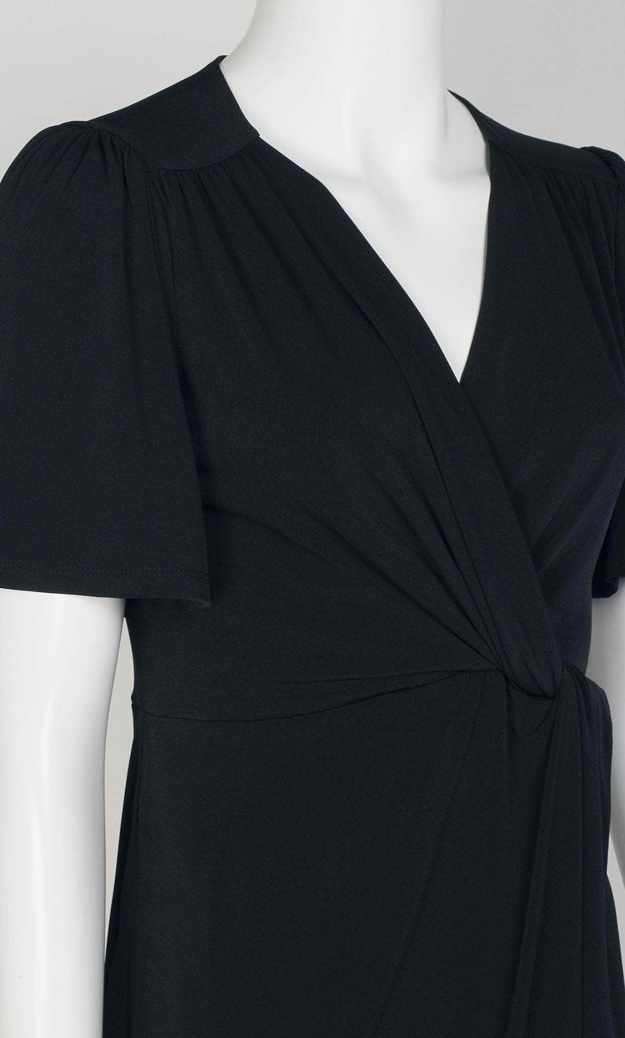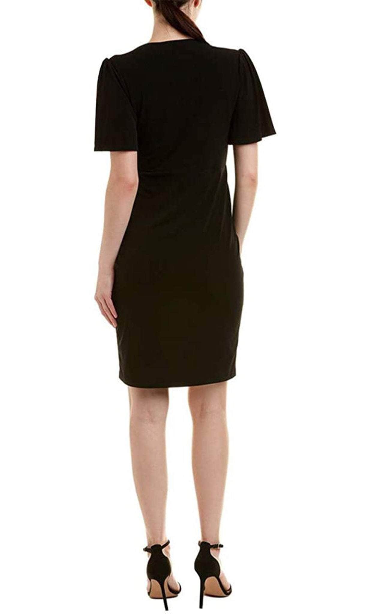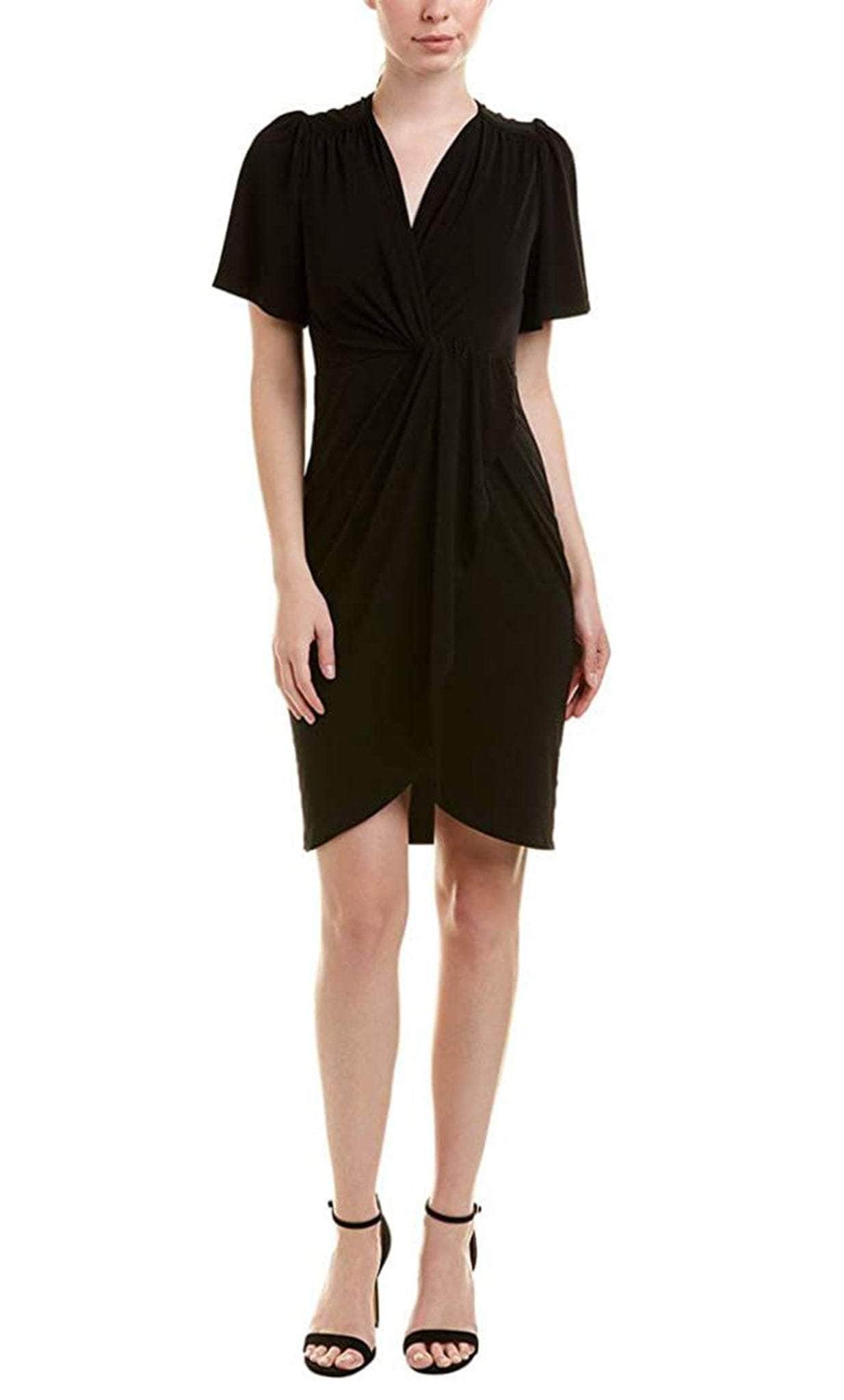 Look stunning in this vogue short dress by Catherine Malandrino MCD80022. The dress is made from high-quality jersey material that is both comfortable and figure-hugging. The pleated bodice adds texture and dimension to the dress, while the tulip hem adds a unique and stylish touch. The natural waistline is accented with a subtle tie detail, creating a feminine and flattering silhouette. Appear in elegance in this lovely Catherine Malandrino MCD80022! Model is wearing Black color.