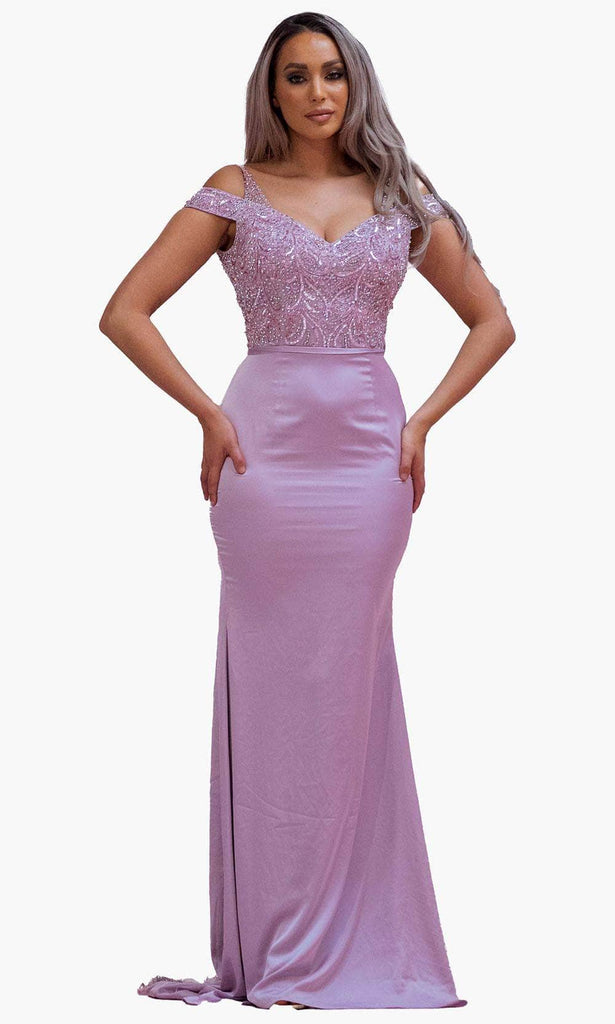 Be ready to fascinate everyone with Chic and Holland BM1821 creation. Glams in a cold shoulder, V neckline with a top bodice adorned with sequins and beads embellishments. The back exhibits a low open cut and a zipper closure. While the skirt features an illusion panel at the back adorned with beaded appliques. This full-length trumpet silhouette gorgeously finishes in a sweep train. This Chic and Holland dress is truly a definition of glamour. Buy the trendiest and chicest Chic and Holland Haute Couture evening gowns, luxury evening dresses, chic Couture prom dresses, Haute Couture cocktail dresses and Haute Couture evening dresses to make a grand entry at special events. Model is wearing the Lavender color.