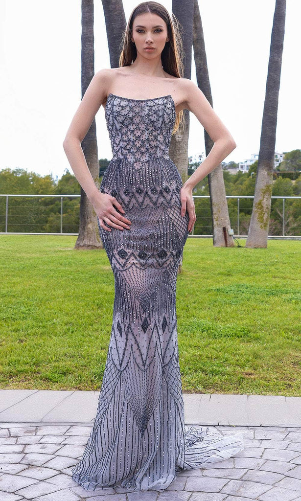 Creates unforgettable moments when wearing this evening dress from Holland and Chic HF110337. This strapless ensemble has lavished beadwork, lace appliques, and sequin embellishments that create a mesmerizing contrast. The scoop neckline is flattering and attractive, while the midrise back has a zipper closure to makes dressed a breeze. The skirt highlights the sheath silhouette that embraces your curves and cascades to floor sweeping train. This Chic and Holland HF110337 dress is incredibly gorgeous and ideal for any special occasion. Model is wearing Gunmetal color.