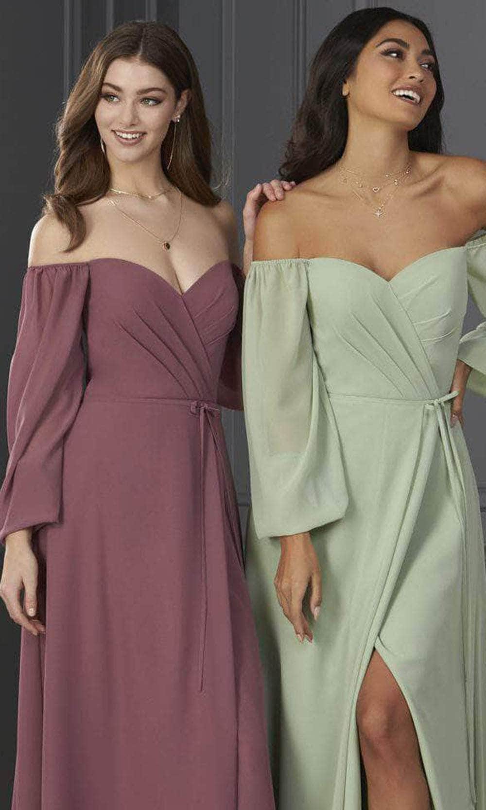 Fret not and gleam in confidence wearing this Christina Wu Celebration 22124. This beautiful long dress features a sweetheart neckline on a wrapped bodice, with soft billowy long sleeves that lead to a V-shaped back and are secured with a back zipper closure. Added to the glamour of this dress is the tie on the empire waist and the thigh slit. . It parades a long sheath silhouette. Show off your softer side in this lovely evening gown by Christina Wu Celebration. Models are wearing Hunter Green, Romance (L), Meadow (R) colors.