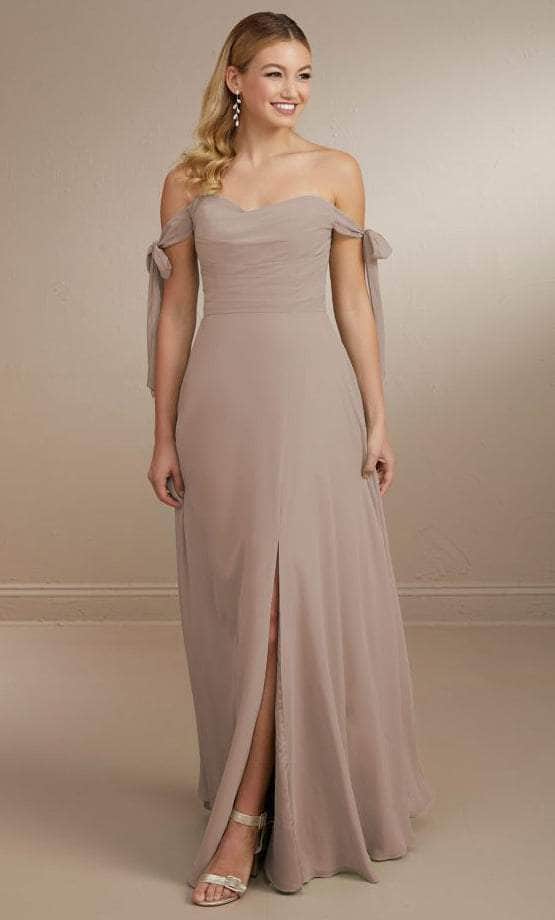 Be noticeable on every occasion with this beautiful creation by Christina Wu Celebration 22162. Showcasing a draped ruched bodice, this stunning beauty has an off-shoulder sweetheart neckline and tie bow detail on the sleeves. A v-shaped highlights the mid-open back, secured by a center zipper fastener. The A-line skirt features side pockets and a front slit, completed in a floor length hemline. This Christina Wu Celebration 22162 gown is sure to display your natural beauty and grace. Models are wearing the Meadow and Sage colors.