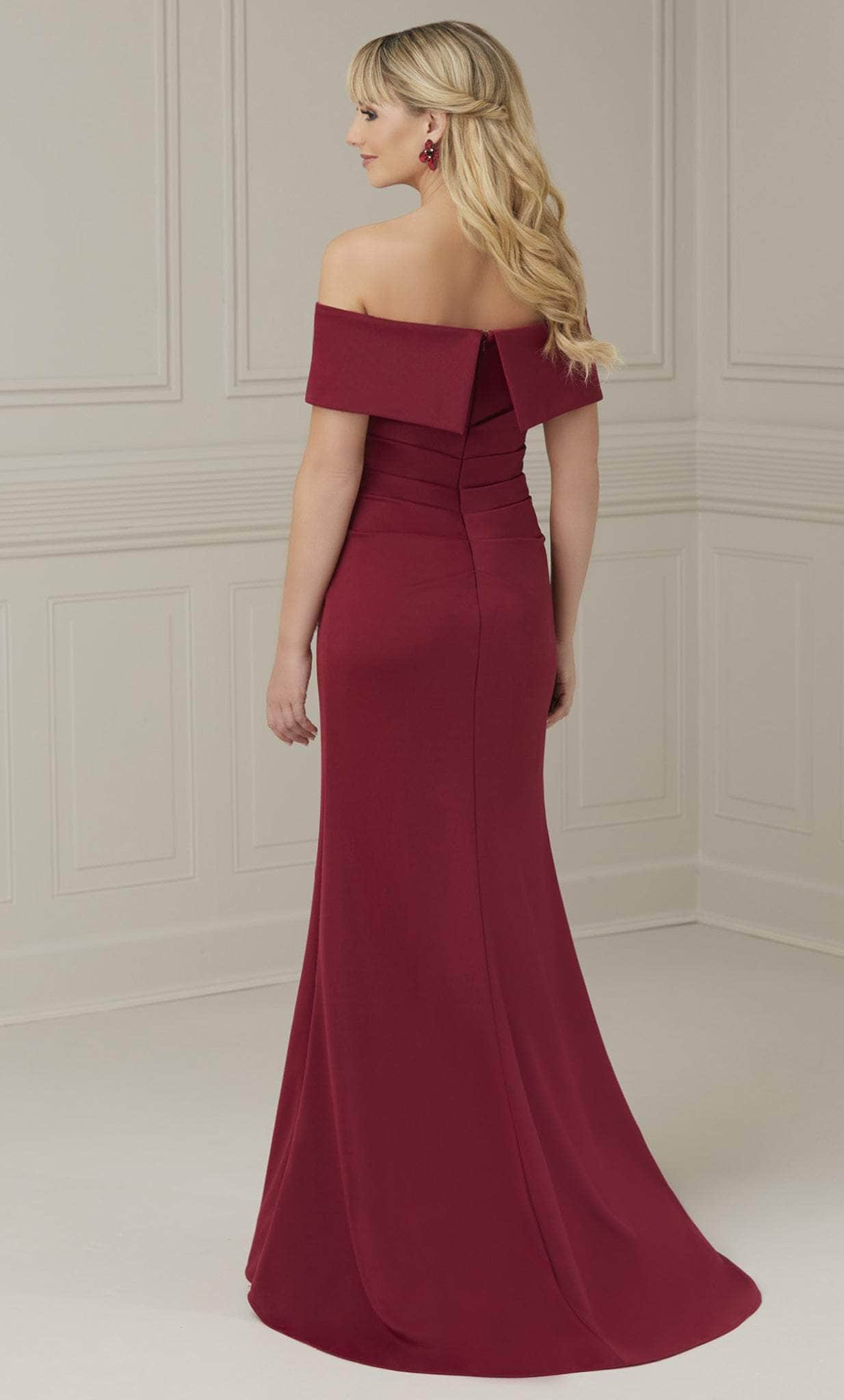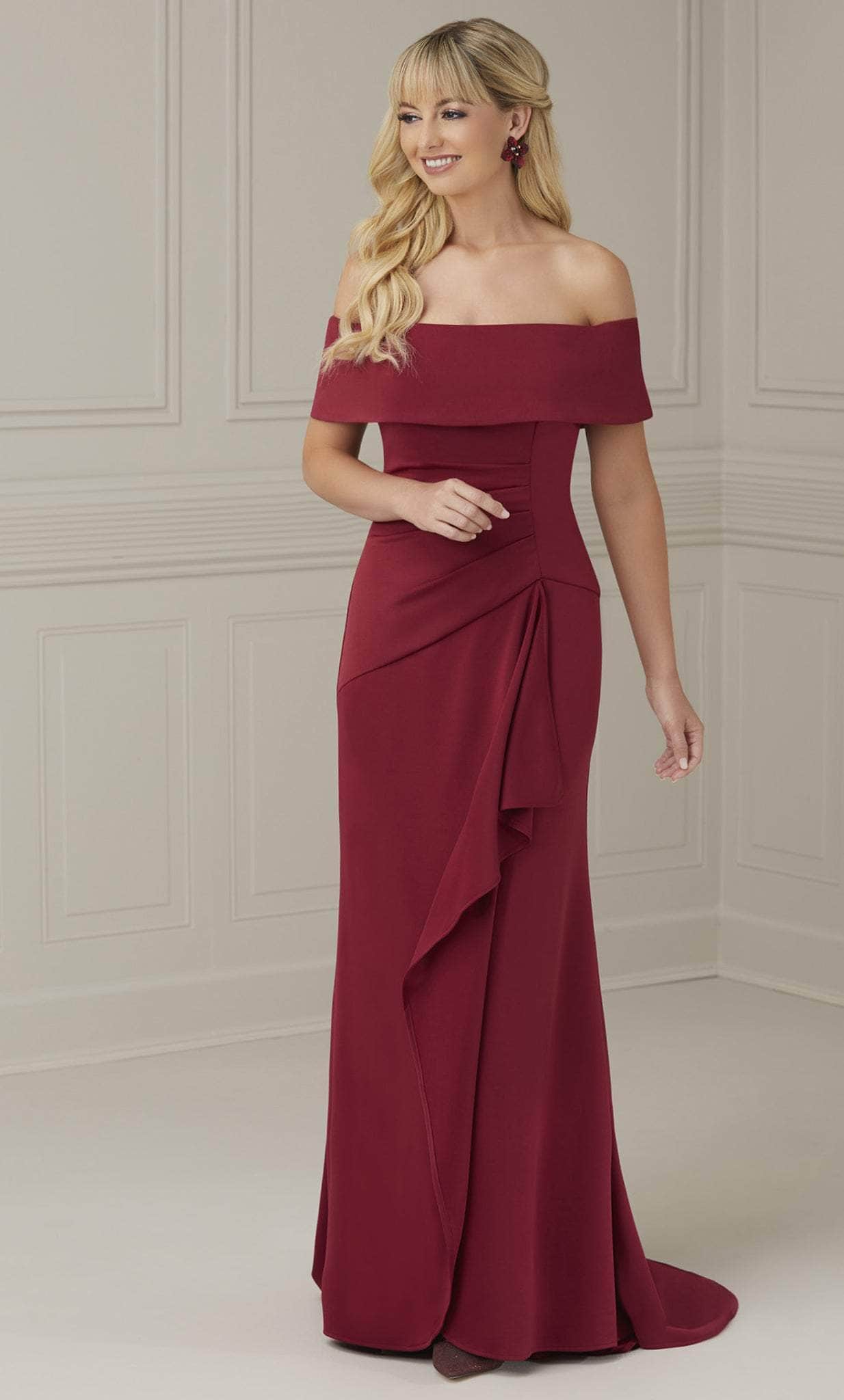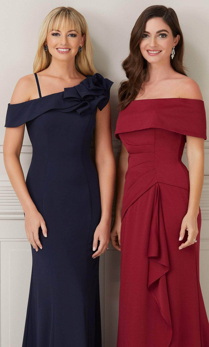 Immerse yourself in classic elegance in this fascinatingly tailored Christina Wu Elegance 17104 creation. Adorned with sculpting seams flattering the feminine form, this beauty starts off with an off shoulder neckline and a draping foldover accent with a split back. Designed with an angular waist design and embellished with a cascading overlap ruffled, the skirt is styled with an underlayer slit as it pools into a sweeping train. Fall in love with the allure of this Christina Wu Elegance masterpiece. Model is wearing the Wine color.