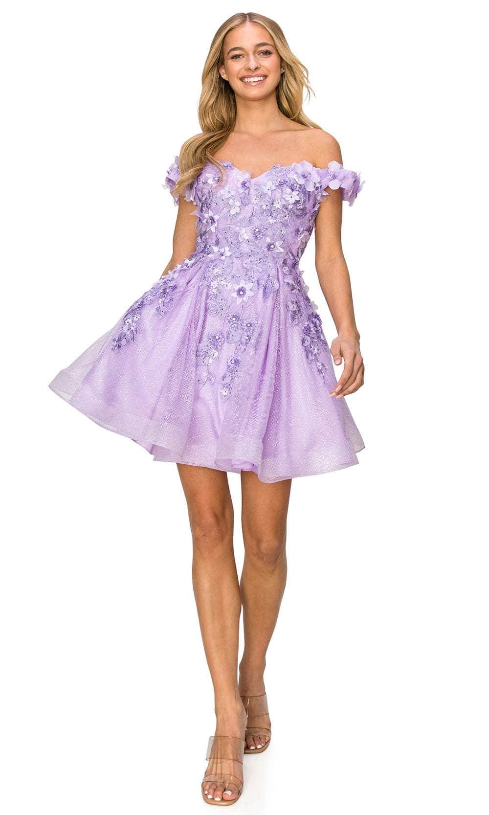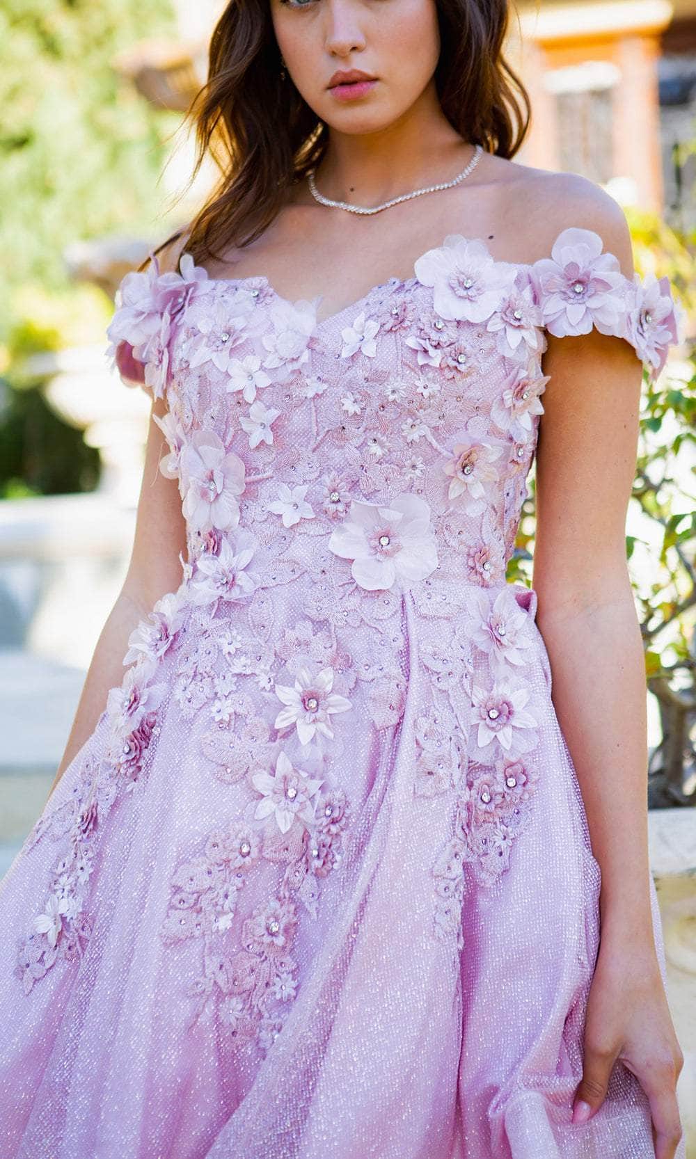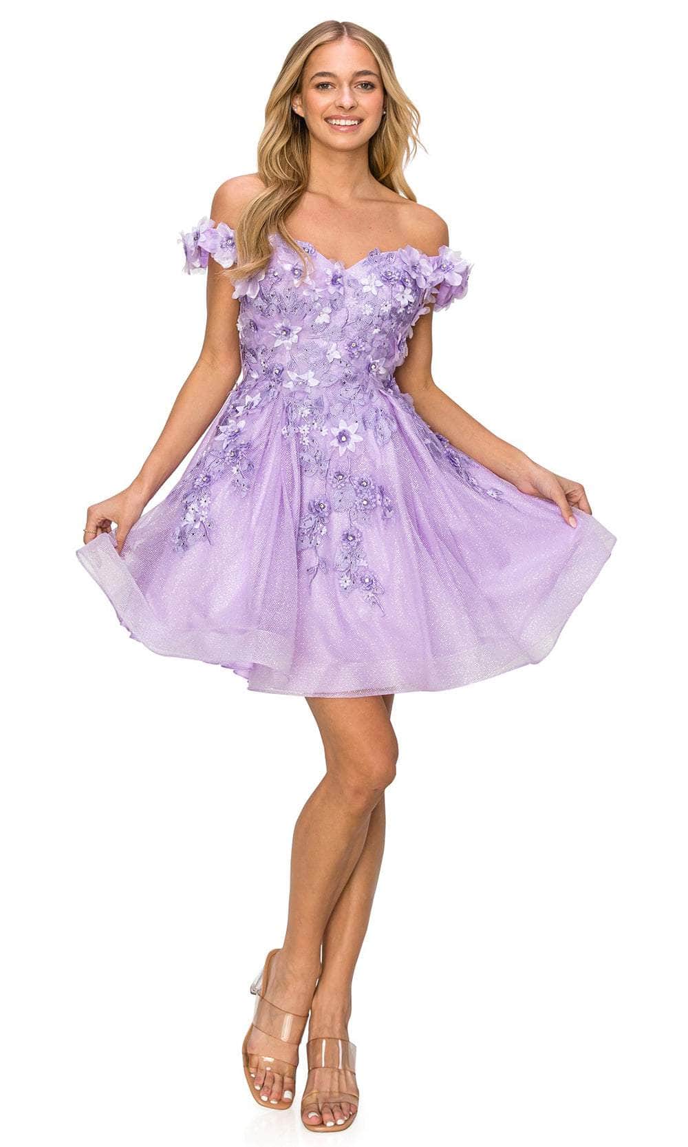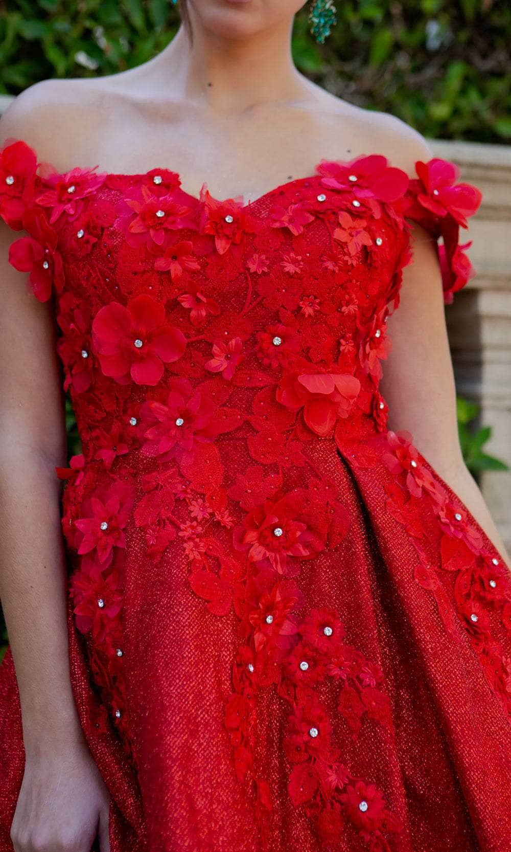 Unleash your inner beauty and radiate confidence in this Cinderella Couture 5120J masterpiece. The dress is decorated with embroidery, 3D floral appliques, and beading that gives it a charming, feminine touch. It showcases an off-shoulder sweetheart, cap sleeves, and a midrise back with lace-up closure. The pleated A-line skirt gracefully flows to the short hemline, enhanced with a horsehair trim. Dance and enjoy your next special party or event in this short, sassy, and stylish dress by Cinderella Couture 5120J. Models are wearing Blue, Blush, Dusty Rose, Green Hunter, Lilac, and Red colors.