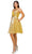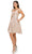 Elevate your fashion game with the show-stopping allure of Cinderella Couture 8014J. Crafted from shimmering metallic glitter fabric, this sensational creation features a chic cold shoulder design, complete with delicate spaghetti straps and beaded fringe off-shoulder sleeves. The surplice v-neckline and corset lace-up back add a hint of enchantment, while a dazzling beaded rhinestone belt cinches the waist for a touch of glamour. Let the A-line silhouette of the skirt gracefully flow to a short hemline, infusing your look with playful sophistication. Become the epitome of elegance and charm as you light up the party in this Cinderella Couture 8014J cocktail dress, ensuring you are the belle of the ball. Models are wearing Gold, Lilac, and Rose gold colors.