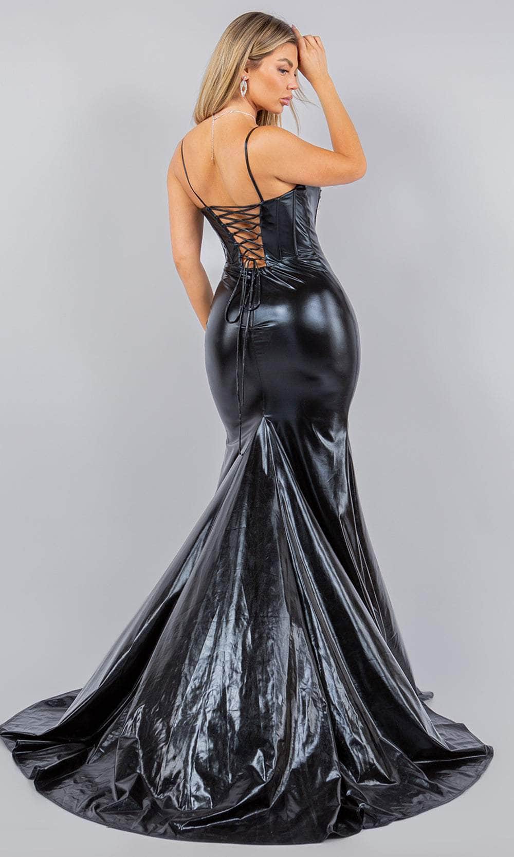 Elevate your style with Cinderella Couture 8092J, a sleeveless gown that exudes timeless charm. The corset bodice, adorned with a sheer insert and beaded bust, adds a touch of sophistication. The Lace-Up Back and Back Zipper Closure ensures a secure fit, while the godet detailing introduces a flattering silhouette. The gown is completed with a graceful train, making it a perfect choice for special occasions where you want to make a memorable entrance. Dress to impress in Cinderella Couture 8092J. Model is wearing Black color.