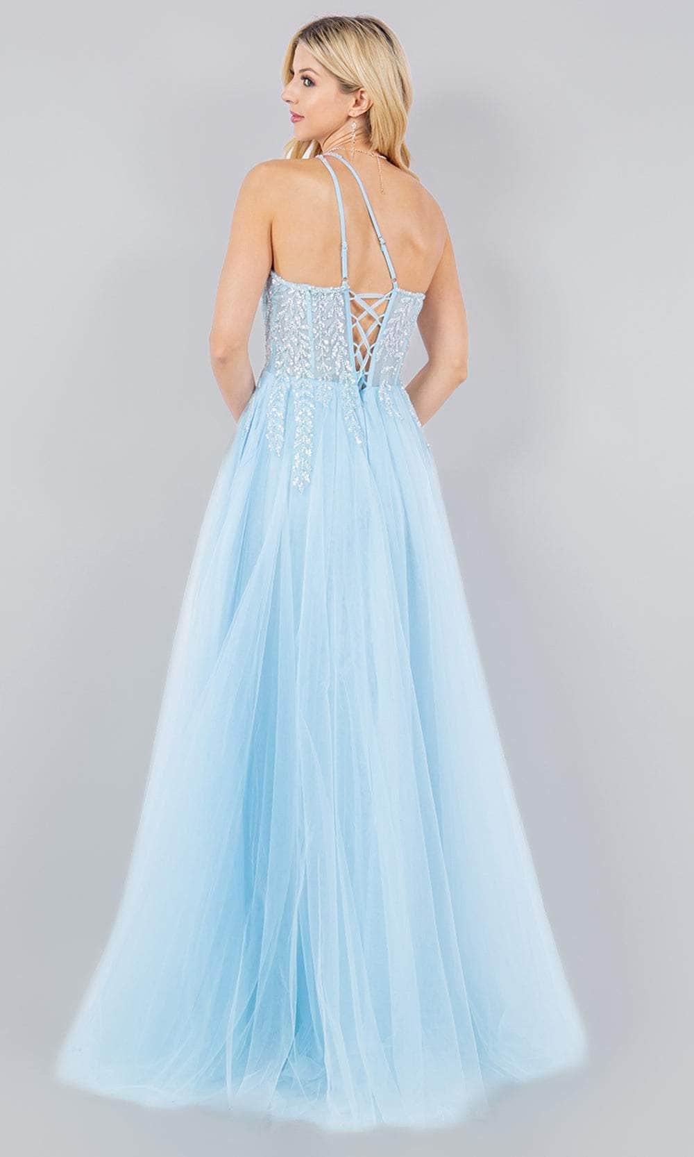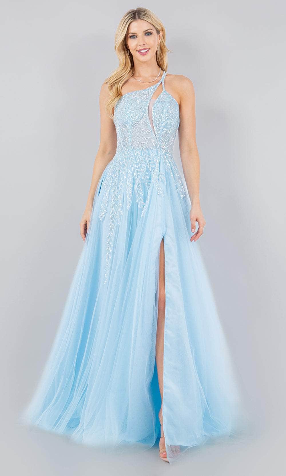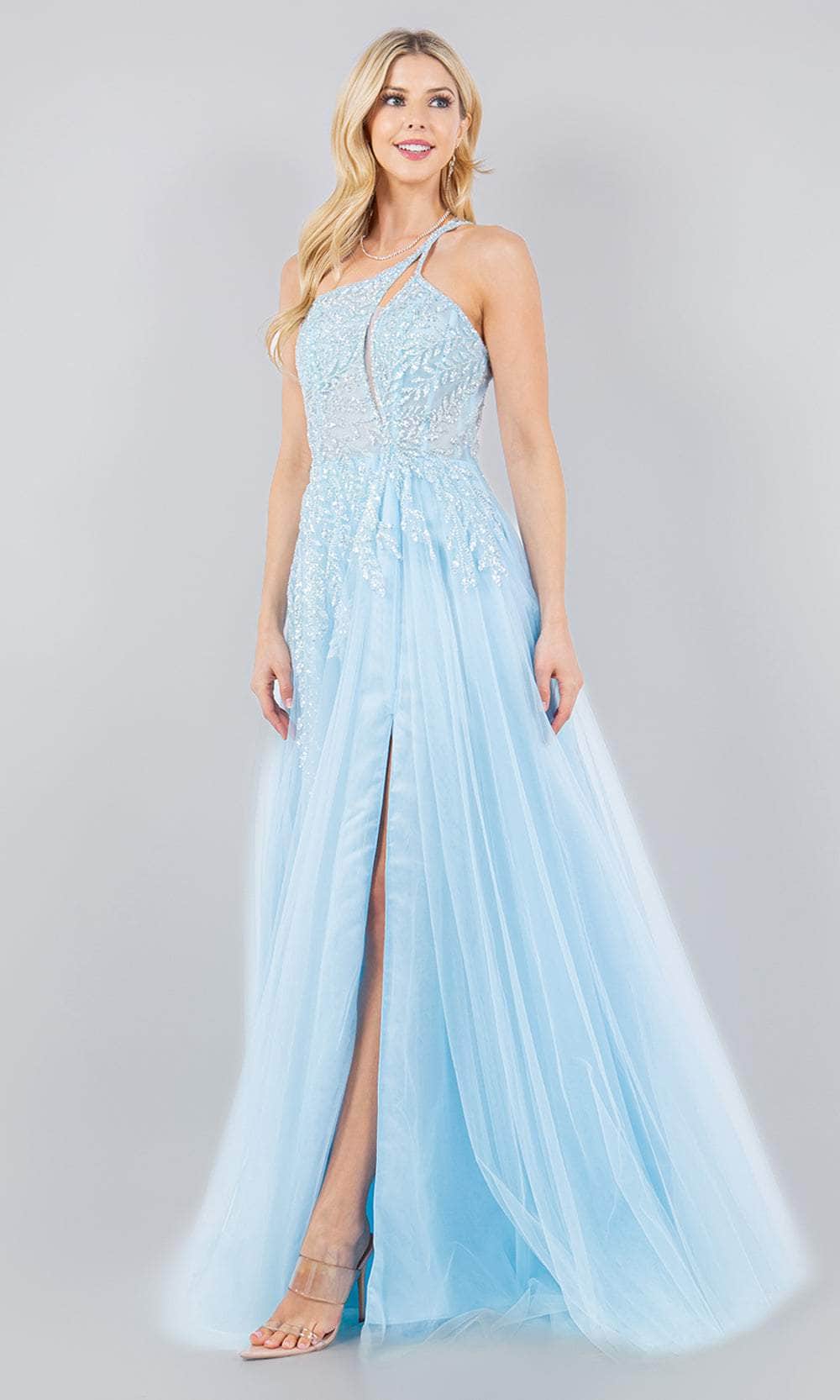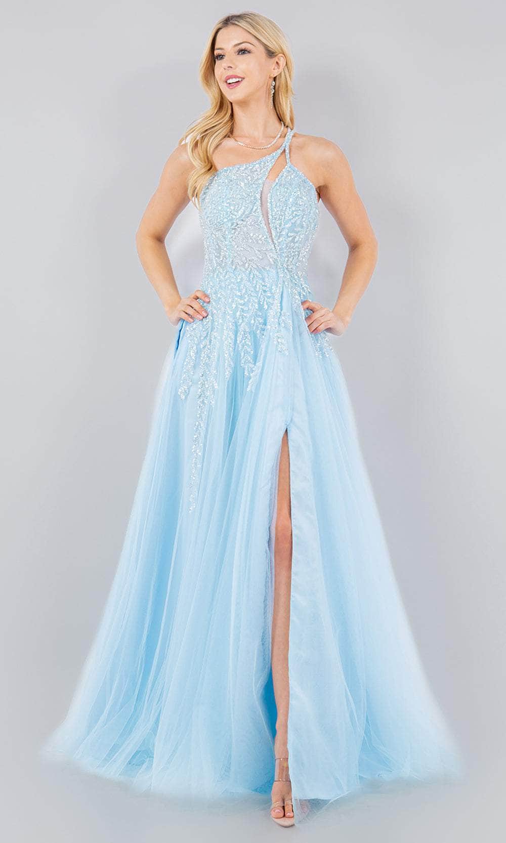 Turn yourself into a head-turning sensation with this Cinderella Couture 8118J, a captivating A-line soft tulle gown embellished with sequins for an ultra-glamorous touch. This dress features an exquisite fitted design and a gathered waistline, ensuring you stand out on your special night. The shoulder strap neckline adds an elegant flair, while the leg slit delivers the quintessential sexy prom look. This form-fitting gown guarantees all eyes will be on you. With a back zipper and corset spaghetti back, it ensures easy entrance, the best fit, and maximum comfort. Make a statement with this Cinderella Couture 8118J. Model is wearing Blue color.
