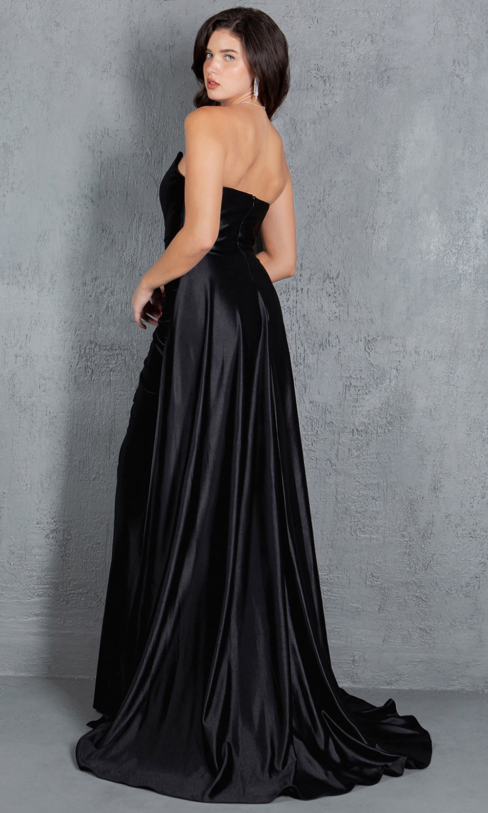 | Details: | Strapless, Ruched Bodice, High Slit, Sweep Train, Concealed Back Zipper, Overskirt |