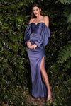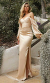 Make it your time to shine in this fantastic Cinderella Divine 7482 creation. Gleaming with a wrap style bodice, this stunner promoted a sweetheart neckline with billowy bishop sleeves. Draped with a slit, the sheath skirt streams into a full length hemline. Offer up a sophistication that glows in this Cinderella Divine masterpiece. Models are wearing the Champagne, Emerald, Mauve, Rose Gold, Sage, Sienna, Smoky Blue, and Sunset Rust colors.