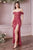 Details: Corset Bodice, Draped Straps, Lace Up Back, High Slit, Floor Length Hem