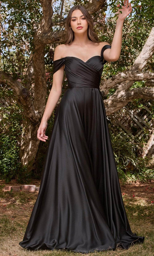 Stay fashionable and classy throughout the night in this Cinderella Divine 7493 creation. The gown showcases a beautifully ruched faux-wrap bodice with a flattering sweetheart neckline and off-shoulder sleeves. The A-line skirt begins from the natural waist and flows effortlessly to the full-length hem. For a dramatic and enchanting finish, it showcases an alluring side high slit and sweeping train. Astound everyone with your charm in this Cinderella Divine 7493 design. Models are wearing Black, Burgundy, Emerald, French Navy, Lavender, and Mauve Rose colors.