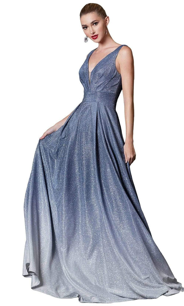 Cinderella Divine - 9174 Metallic Plunging V-Neck A-Line Dress