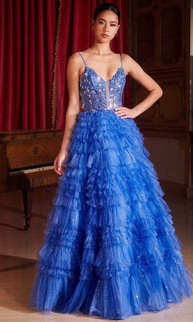 Embody timeless elegance with Cinderella Divine C152, a stunningly dazzling gown. The sleeveless corset bodice is beautifully adorned with intricate embroideries and shimmering sequins, radiating captivating charm. Secured by a back zipper closure, the gown ensures a perfect fit. Flowing into a floor-length tiered skirt, the ballgown silhouette creates a breathtaking vision of ethereal beauty. Cinderella Divine C152 is the perfect choice for those seeking a sophisticated and enchanting appearance, making a stunning impression at any special event. Models are wearing Azalea Pink and Deep Blue colors.