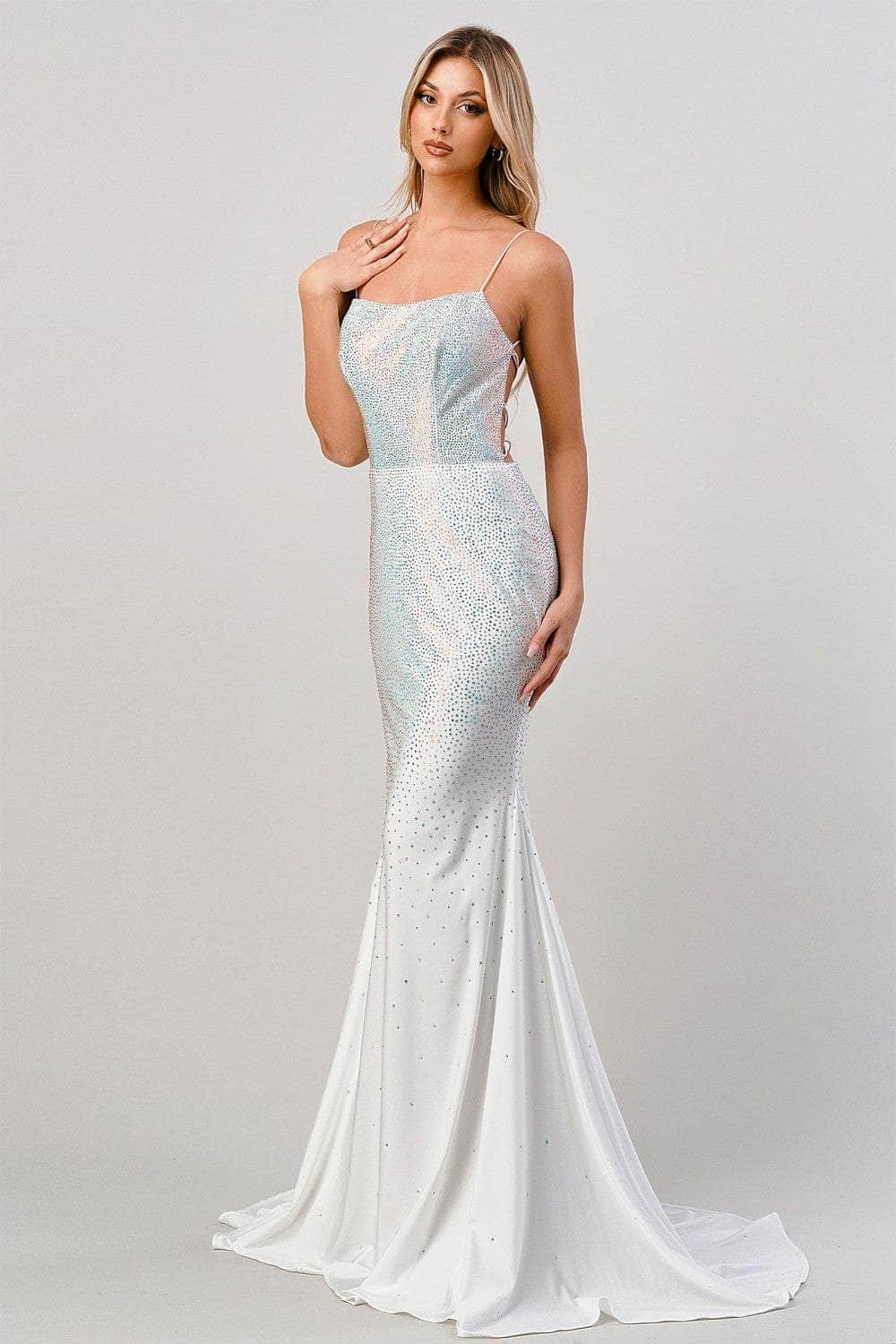 Steal the show in this dazzling creation by Cinderella Divine CD0179. Festooned in a luxurious beaded embellishment, this sleeveless stunner fashions straight across neckline supported by thin straps which leads to a sexy open back with a strappy lace to properly snug the bodice. The skirt brings drama with a court train finish. This Cinderella Divine creation is sure to be an attention-grabber in any occasion. Whether you are looking for a unique prom dress to stand out, bridesmaid dresses or Mother of the Bride dress for that special day, or just an evening dress for a special night out, Cinderella Divine has your dress at the right price. Models are wearing Lt Blue, Neon Fuchsia, the White-Multi colors.