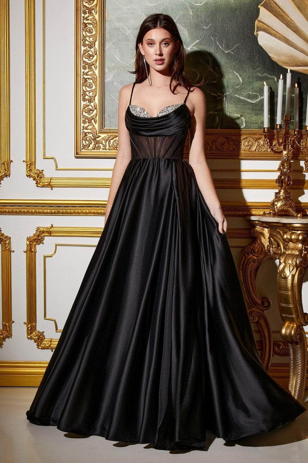 Cinderella Divine CD276 - Sleeveless A-Line Gown with Pleated Details
