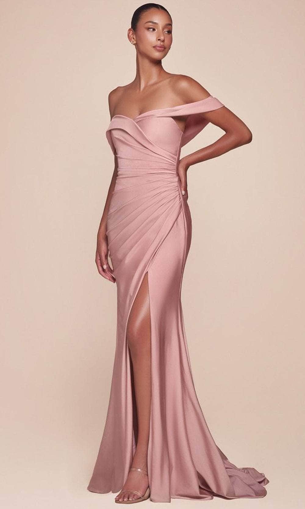 Cinderella Divine CD790 - Off Shoulder Ruched Long Gown