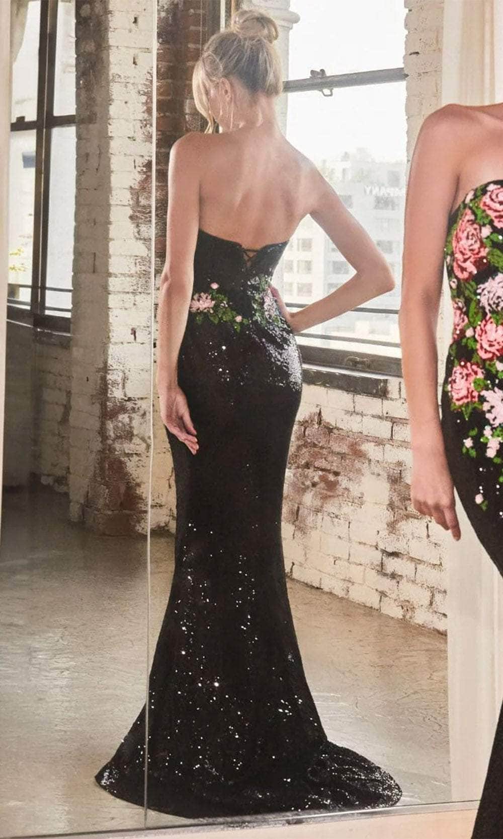Cinderella Divine CD811 - Strapless Floral Embroidered Prom Dress