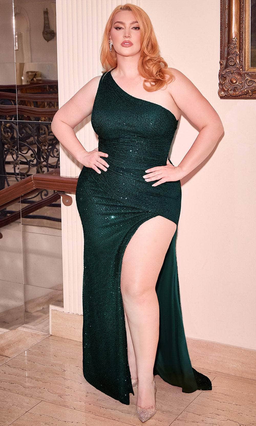 Shine throughout the night in this stunning Cinderella Divine CH077 creation. Covered in shimmering sequins, this dress is designed to catch every eye. The one-shoulder bodice features ruching to accentuate your curves, along with an asymmetrical neckline and a single wide strap. A daring thigh-high slit and mid-open back offer a touch of allure. The sheath skirt flows elegantly to the floor-length hem, finished with a sweeping train for added drama. This Cinderella Divine CH077 gown is timeless, perfect for a variety of special occasions. Models are wearing Black, Emerald, Lapis Blue, Platinum, Red, and Wine colors.