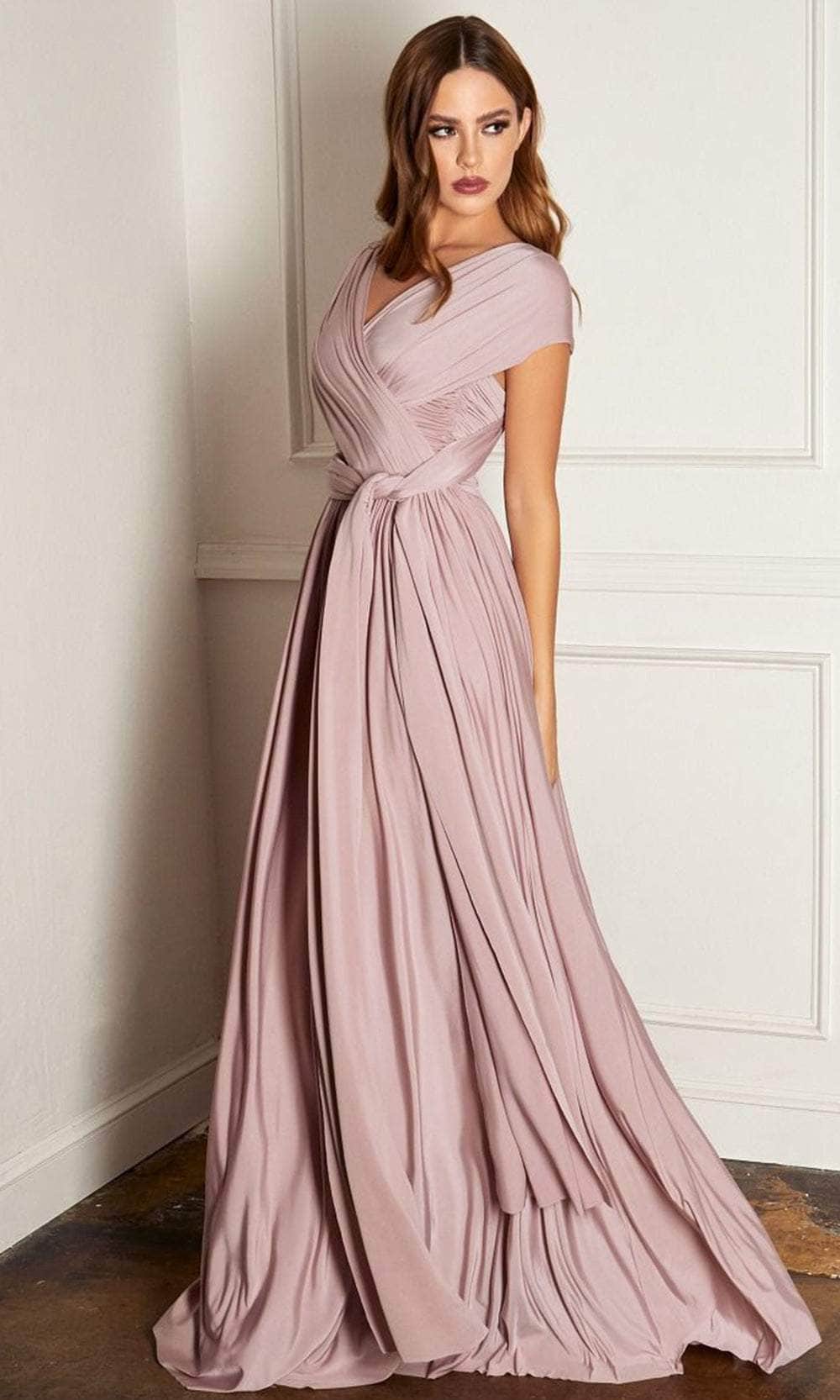 Promote attention-grabbing style in this sophisticated Cinderella Divine CV01 evening dress. You will exude endless charm on your special occasion as you flaunt in this dress which showcases a classy V-neckline on a fitted and sleeveless bodice. It also reveals a pleasantly-looking crisscross waist, heightening the visual appeal of this attire. Additionally, this floor-length A-line creation exhibits an enticing yet highly sophisticated open back, making sure that you gather a list of admirers. Look sophisticated and mature in this simple yet chic Cinderella Divine CV01 masterpiece. Models are wearing Black, Burgundy, Cinnamon, Emerald, Mauve, and Paris Blue colors.
