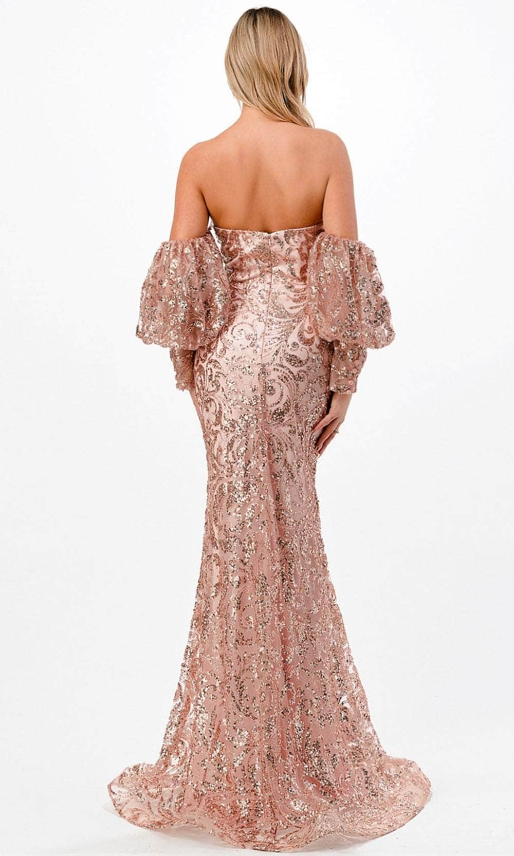 Make a statement with this Cinderella Divine J820 masterpiece. This long strapless dress features a deep sweetheart neckline, adorned in delicate sequin design throughout. A detachable big puffy sleeves can be worn in an off shoulder style giving an extra drama on the dress. Illusion panel on both sides and open back adds sophistication and sultriness on the dress. Cinderella Divine is perfect for a standout style and flawless fit. Whether you are looking for a unique prom dress to stand out, bridesmaid dresses or Mother of the Bride dress for that special day, or just an evening dress for a special night out, Cinderella Divine has your dress at the right price. Model is wearing Silver and Nude color. Find more Cinderella Divine Dresses.