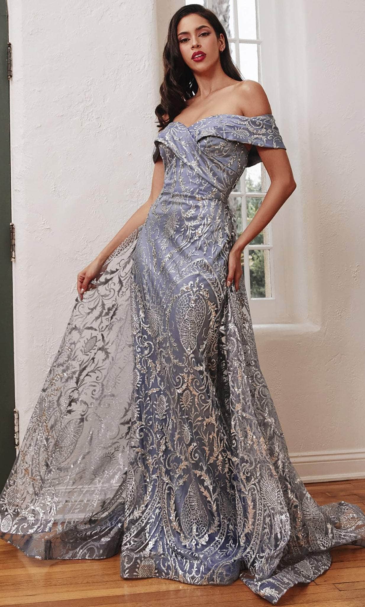 Step into the limelight and command attention in the breathtaking Cinderella Divine J836 gown. This stunning creation is adorned with intricate glittering details on a delicate tulle overlay, crafting a mesmerizing silhouette. The off-shoulder neckline is beautifully complemented by a chic surplice foldover accent, adding a touch of sophistication. Meticulously designed with exquisite embellishments, this gown features a captivating mermaid silhouette that gracefully flows into a sweeping train. For an added dramatic flair, an ornate overskirt cascades from the back, enhancing its overall grandeur. Illuminate any occasion with stunning elegance in this remarkable Cinderella Divine J836 masterpiece, ensuring you leave a lasting impression. Models are wearing the Emerald, Mauve, Rose Gold, Royal, and Smoky Blue colors.