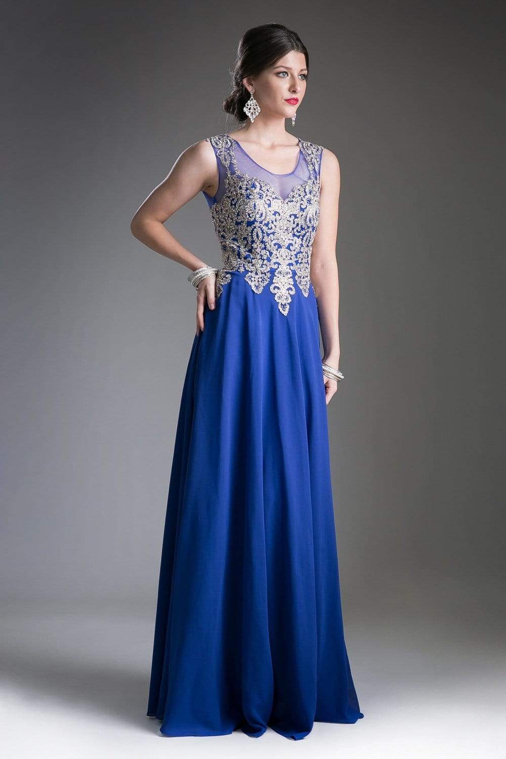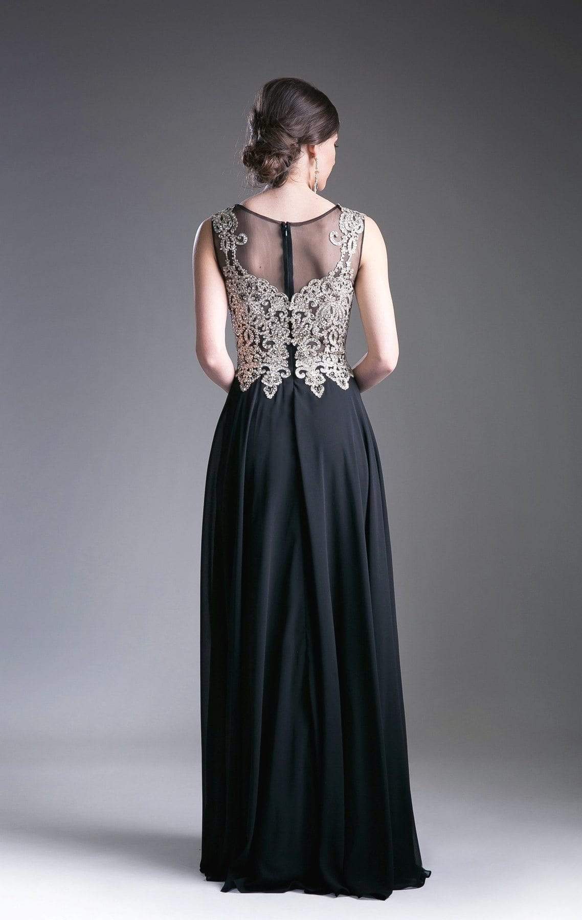 Cinderella Divine - Jeweled Metallic Lace Illusion A-Line Evening Gown