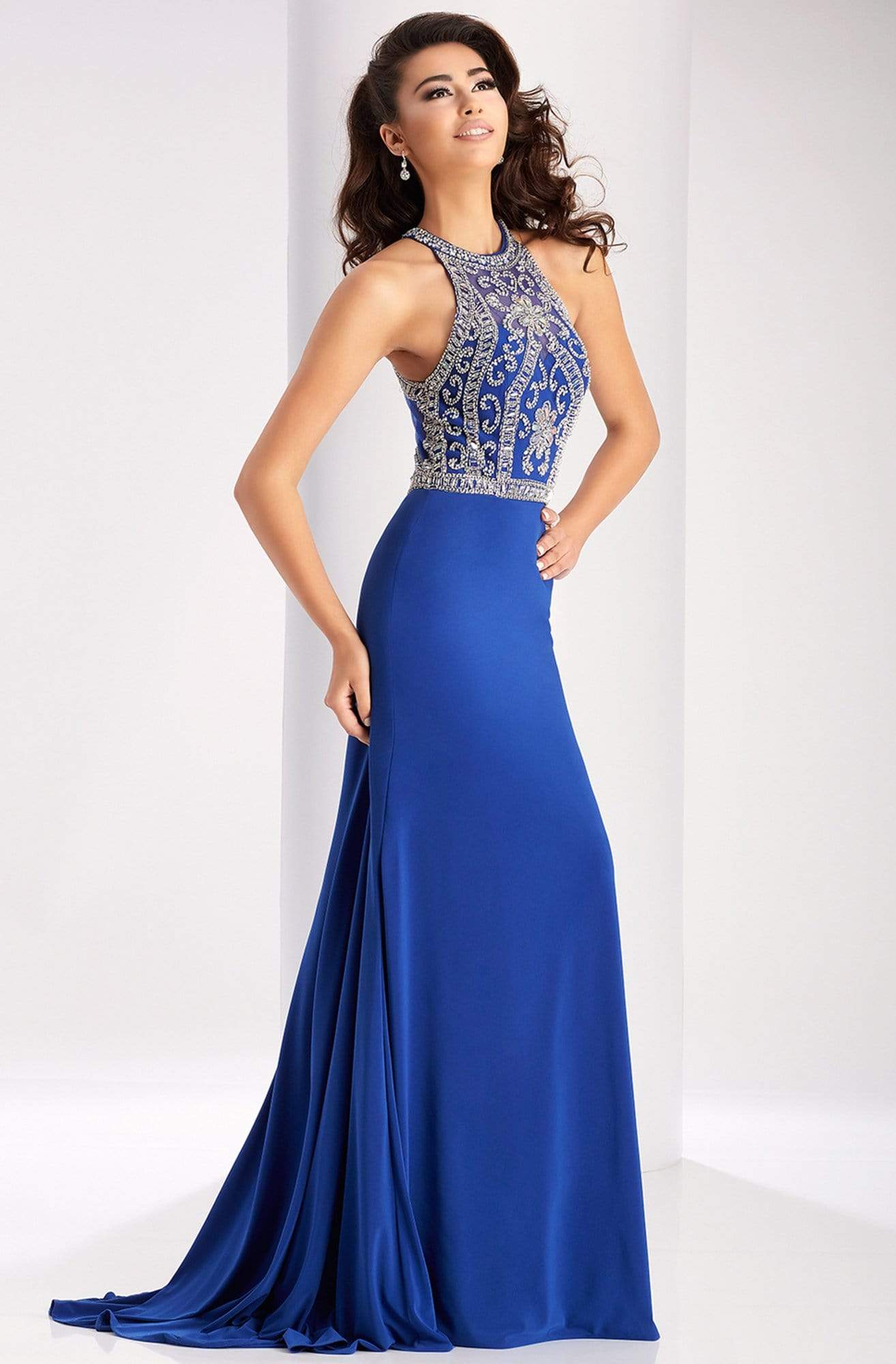 Glow with a sophistication like no other in this gorgeous Clarisse 2807 creation. Embellished with shimmering jewels arranged in an intricate spectacle of scroll and floral on a sheer bodice, this opulent piece shows off a high halter illusion over a sweetheart neckline and a sheer racerback. Shimmering with intricate rhinestones around the natural waist, the stretch taffeta skirt skims down to a flirtatious short hemline. Claim your position at the top of the best dressed list in this ultra-chic Clarisse masterpiece. Model is wearing the Midnight Blue, Marsala and Smoke colors.