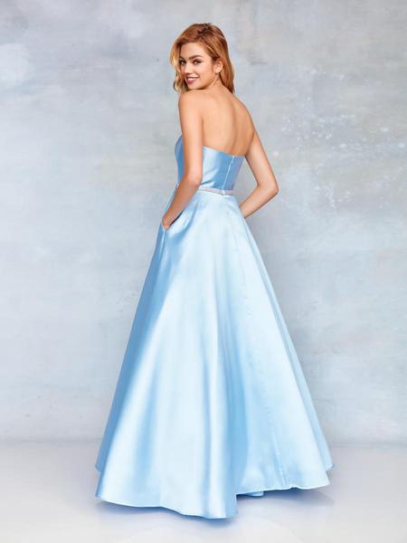This eye-catching and timeless Mikado Prom gown charms in a strapless straight across neckline with princess sculpted fitted bodice and feature a rhinestone embellished belt. The skirt features fine pleats with concealed hip pockets on both side, and immaculately create a grand A-line finish at floor length.