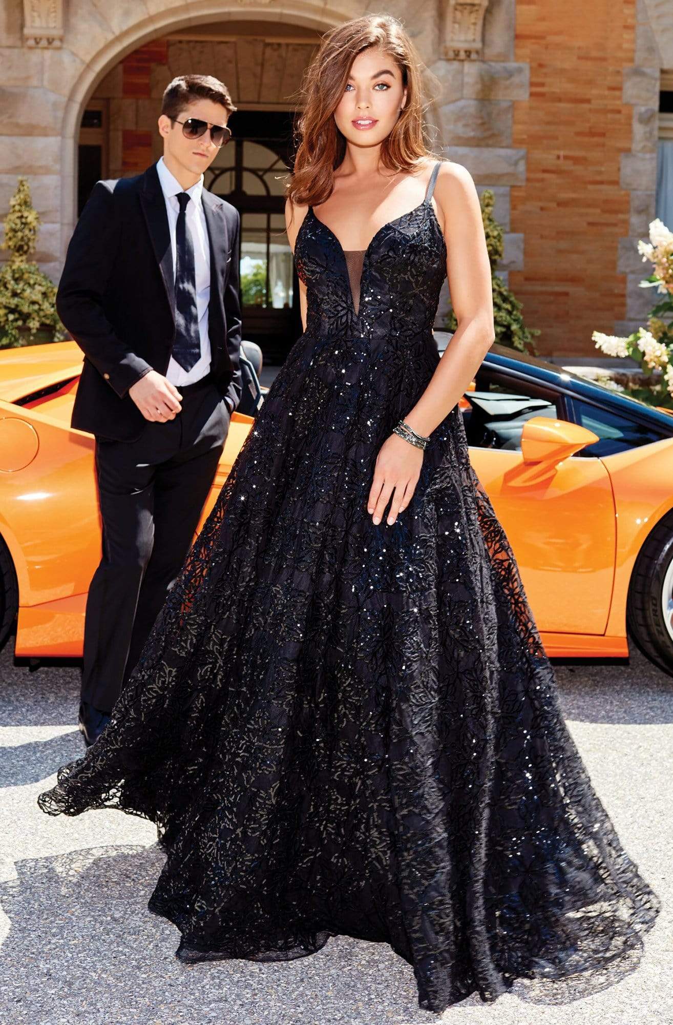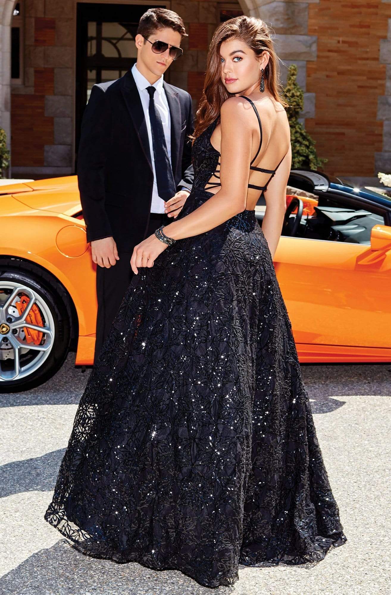 Get glamorous look with this dress by Clarisse 5042. This sophisticated sequined dress features a sleeveless, plunging V-neckline with mesh insert. The fitted bodice is supported with spaghetti straps and flaunts a strappy open back. From the natural waist begins a full length A-line silhouette. This Clarisse dress is an absolute breathtaking look.