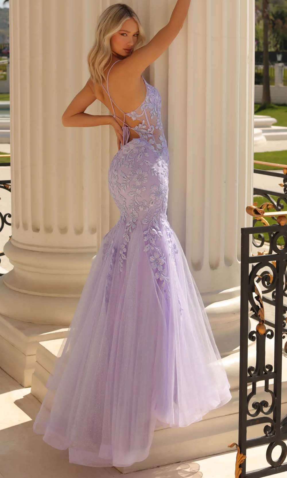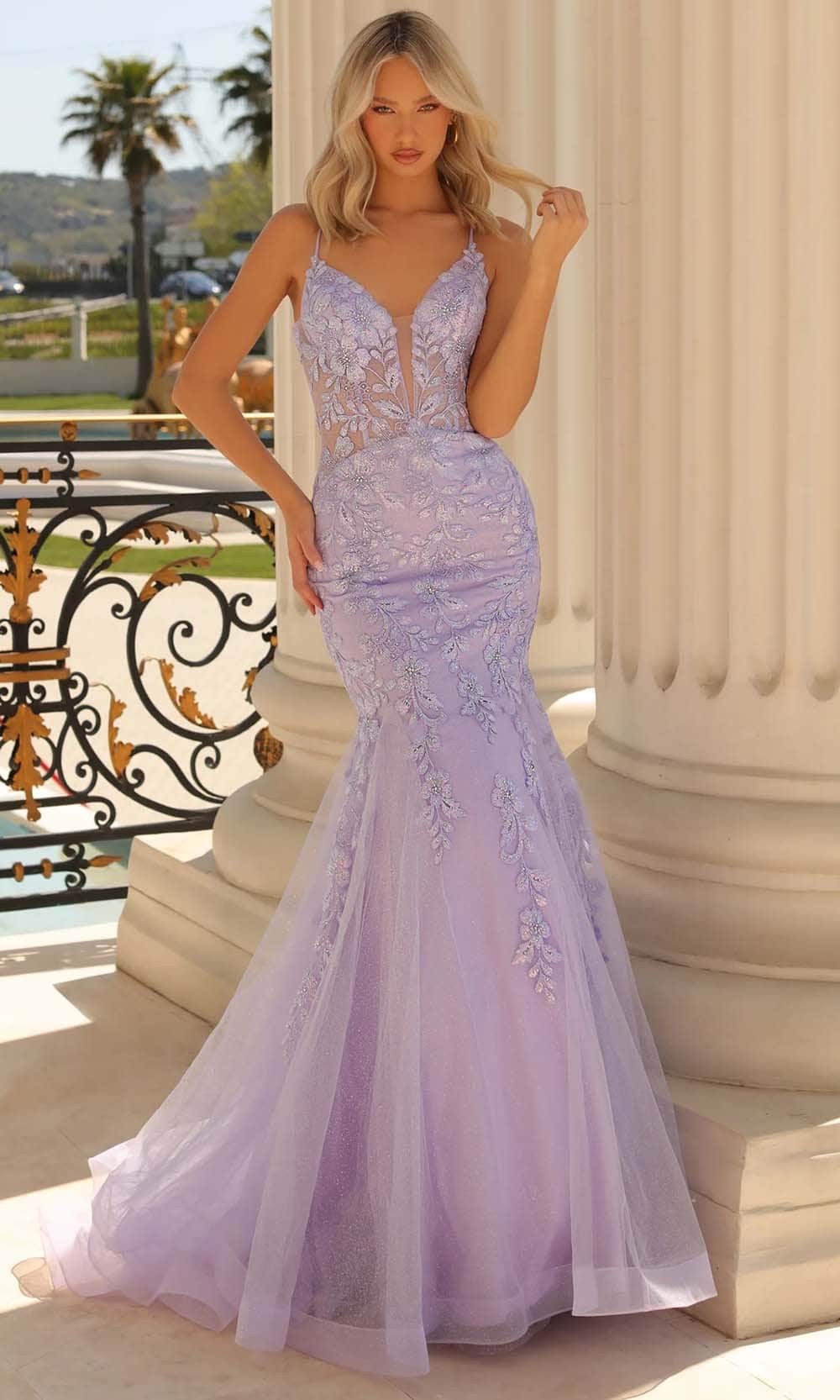 Prepare to embark on a journey through a world of unparalleled sophistication and allure with this Clarisse 810856 gown, a masterpiece of elegance. This enchanting dress boasts a flattering mermaid silhouette, gracefully adorned with intricate floral embroideries that glisten and gleam with every graceful step you take. Its deep V-neckline adds a touch of sultry sophistication, while the sheer corset bodice tantalizingly teases your curves. The lace-up back brings a touch of drama and ensures a perfect fit. Step into this mesmerizing creation and let Clarisse 810856 transform you into the epitome of glamour and charm. Model is wearing Lilac color.