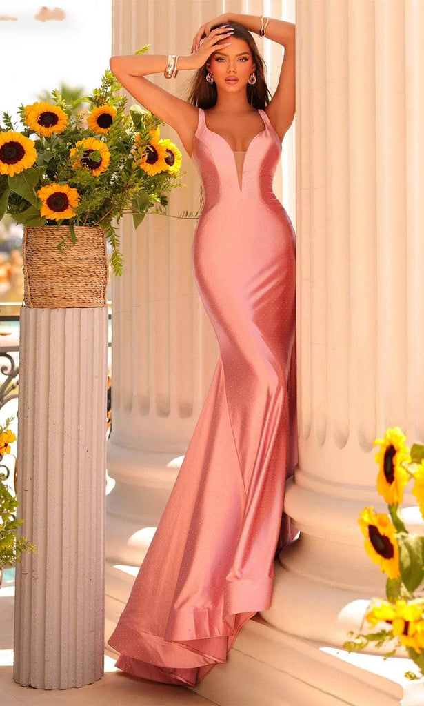 Elevate your evening look with Clarisse 811139, a captivating sheath gown that combines elegance with a touch of allure. This floor-length dress features a plunging sweetheart neckline and sheer panels, creating a sophisticated yet daring silhouette. Sleeveless with an open V back and a secure back zipper, this gown offers a comfortable and stylish fit for any formal occasion. Designed to make an unforgettable impression, this gown embodies grace and sophistication. Embrace timeless beauty with this stunning creation from Clarisse 811139. Model is wearing Dusty Pink, and Steel Blue colors.