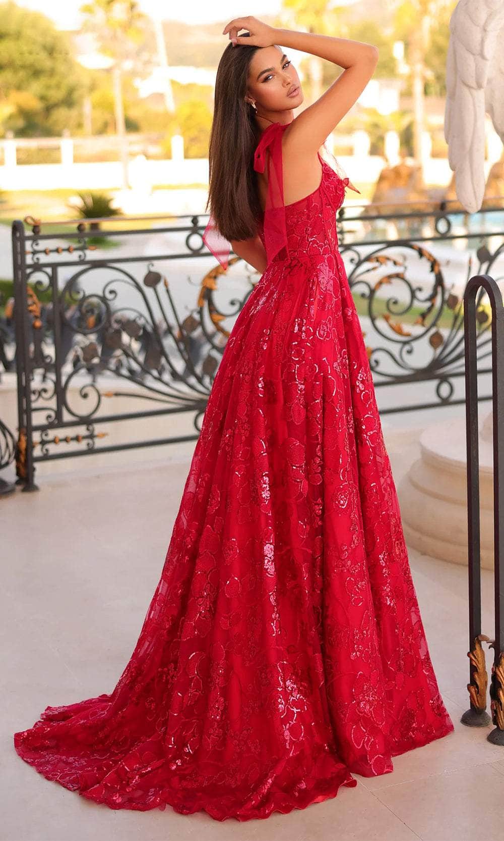 Make a grand entrance in the enchanting Clarisse 811190, a floral sequined A-line gown that exudes elegance and romance. This sleeveless dress features a sweetheart neckline with a corset bodice that beautifully enhances the figure. Lace-up straps add a delicate touch, while a side slit brings a hint of allure to the flowing silhouette. The mid-open back with a back zipper ensures a secure and comfortable fit. Elevate your look with timeless charm in this exquisite piece from Clarisse 811190. Models are wearing Red, and Turquoise colors.