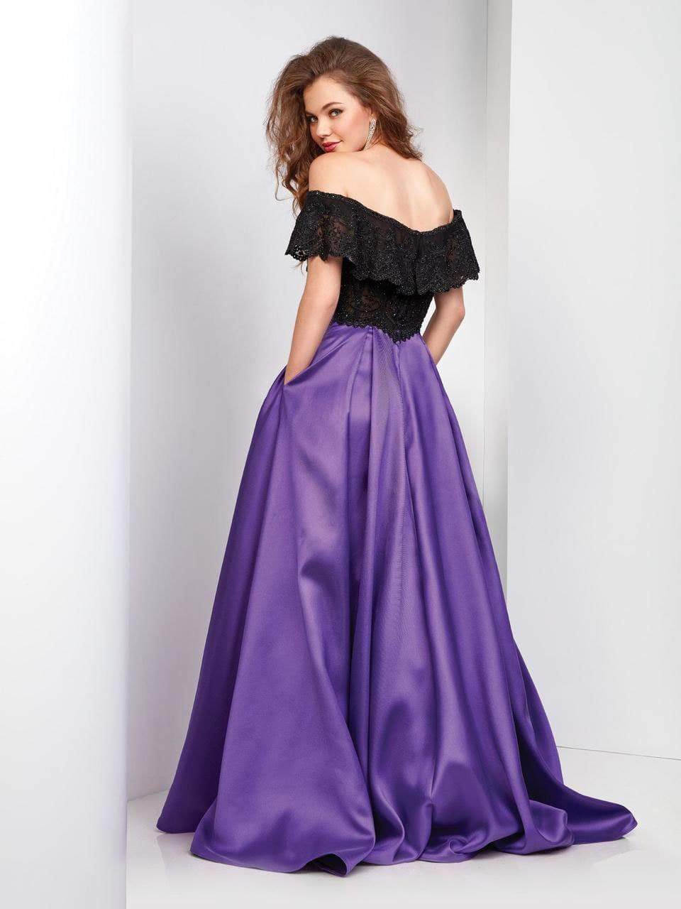 This gown is topped with an off-shoulder neckline and features a scallop lace ruffle over the bust and shoulders and a hint of sheerness. The full pleated skirt is crafted in luminous Mikado fabric and offers an A-line silhouette. The back is mid-open with a center zipper closure. A matching choker necklace means that you will have one less thing to worry about while putting together your look.